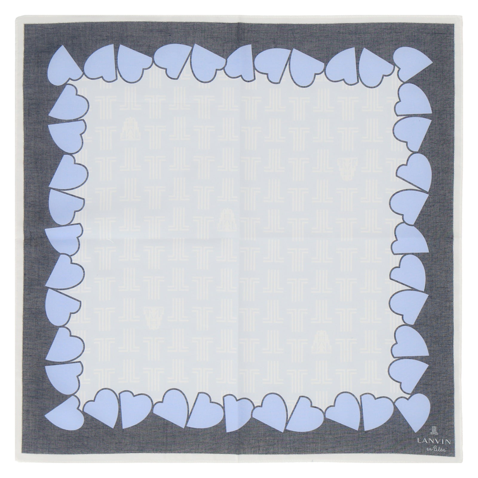フレーム上に並んだカッティングハートの中に「ダブルJLマーク」の総柄がデザインされたプリントハンカチ。 総柄の中には、アールデコ建築からイメージされたモチーフを取り入れています。