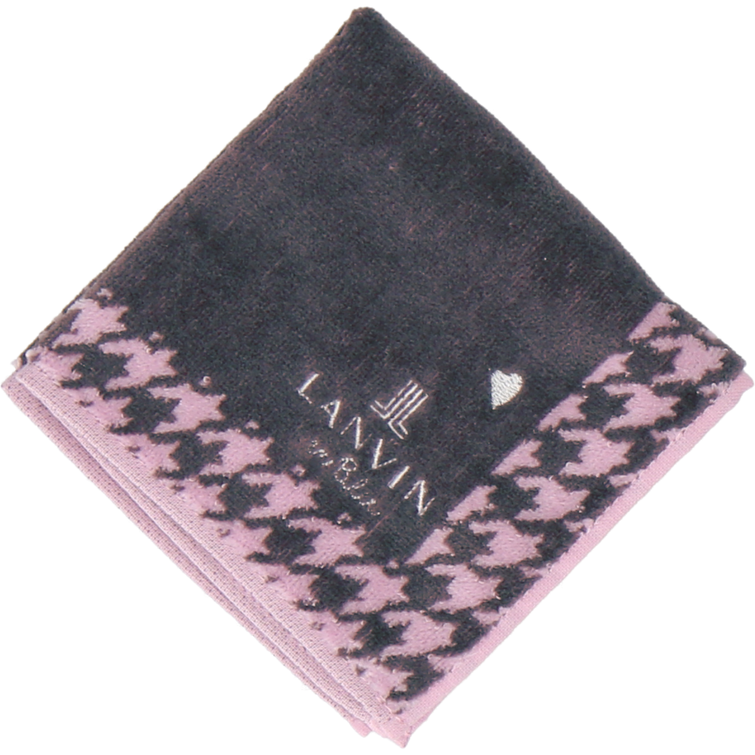 千鳥格子が大人かわいいタオルハンカチ。 さりげないカッティングハートの刺繍がポイントです。