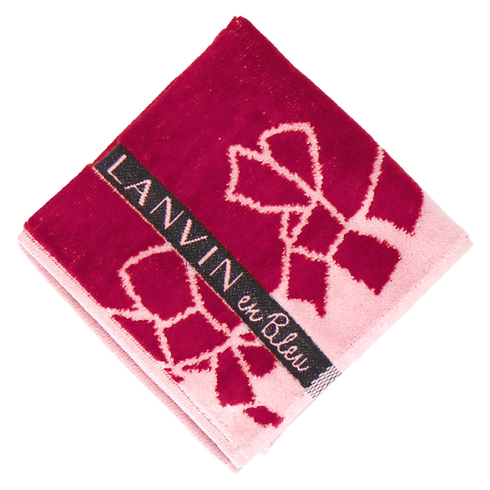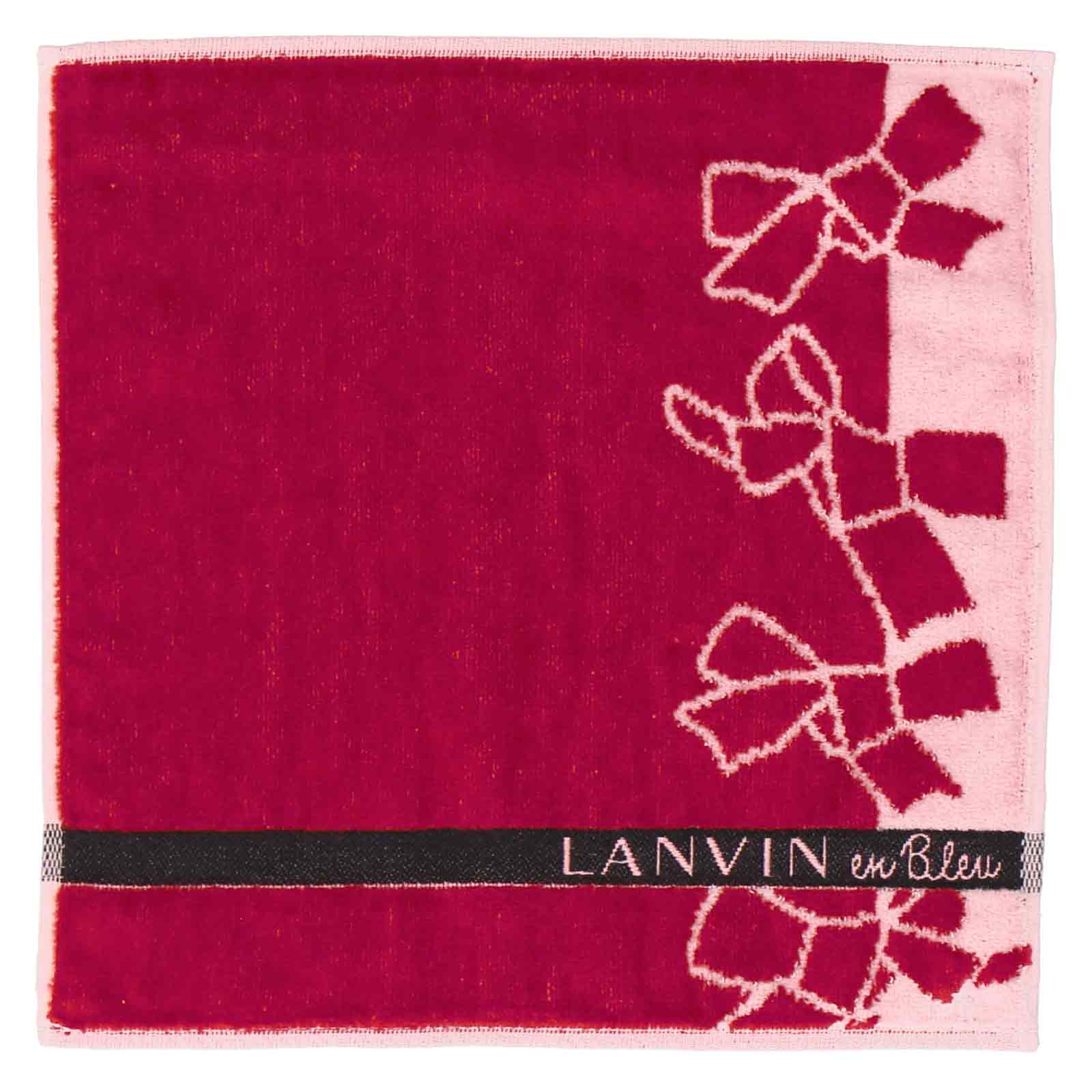 リボンとくすみカラーの配色が大人かわいいタオルハンカチ。 シャーリング加工で滑らかな肌触りが特徴です。