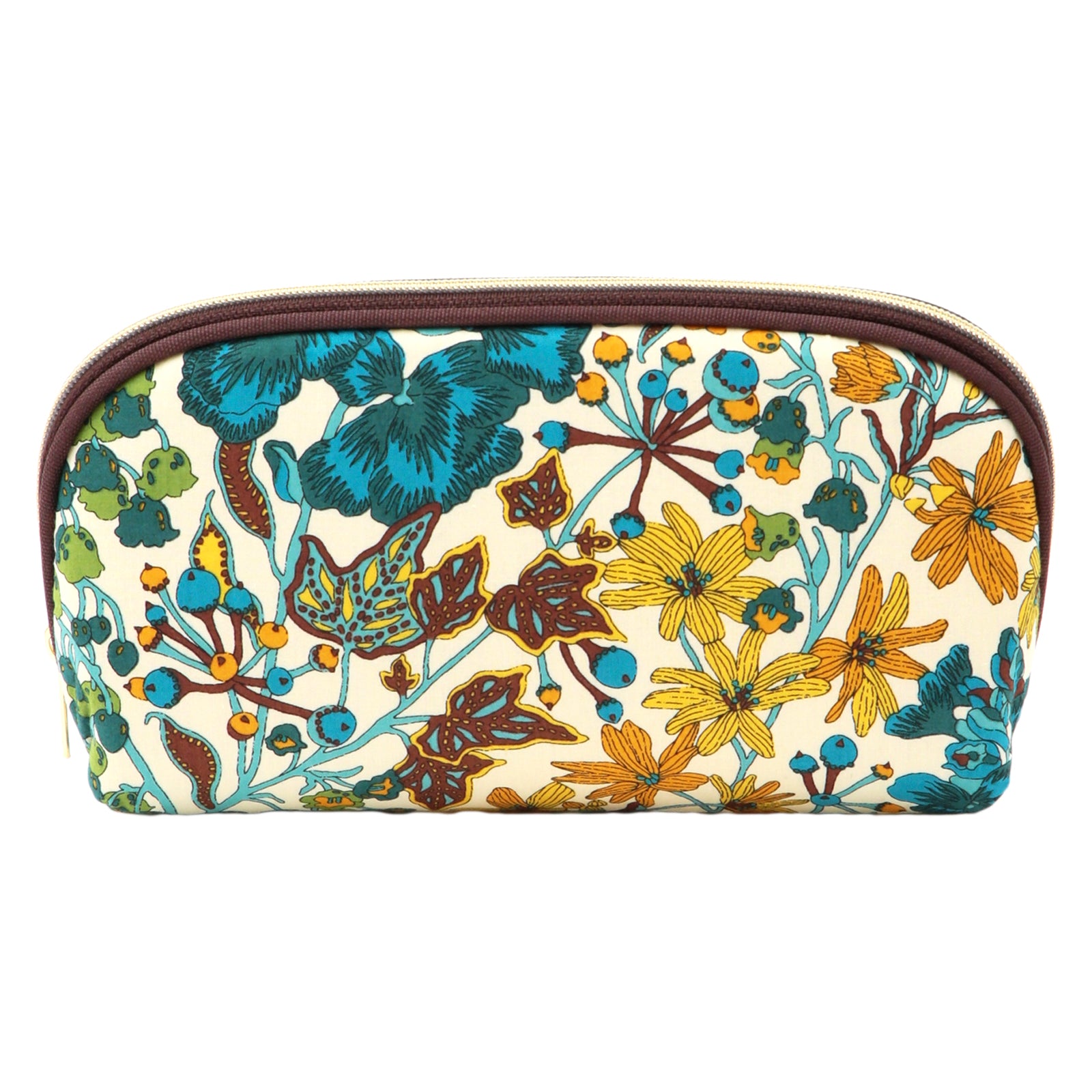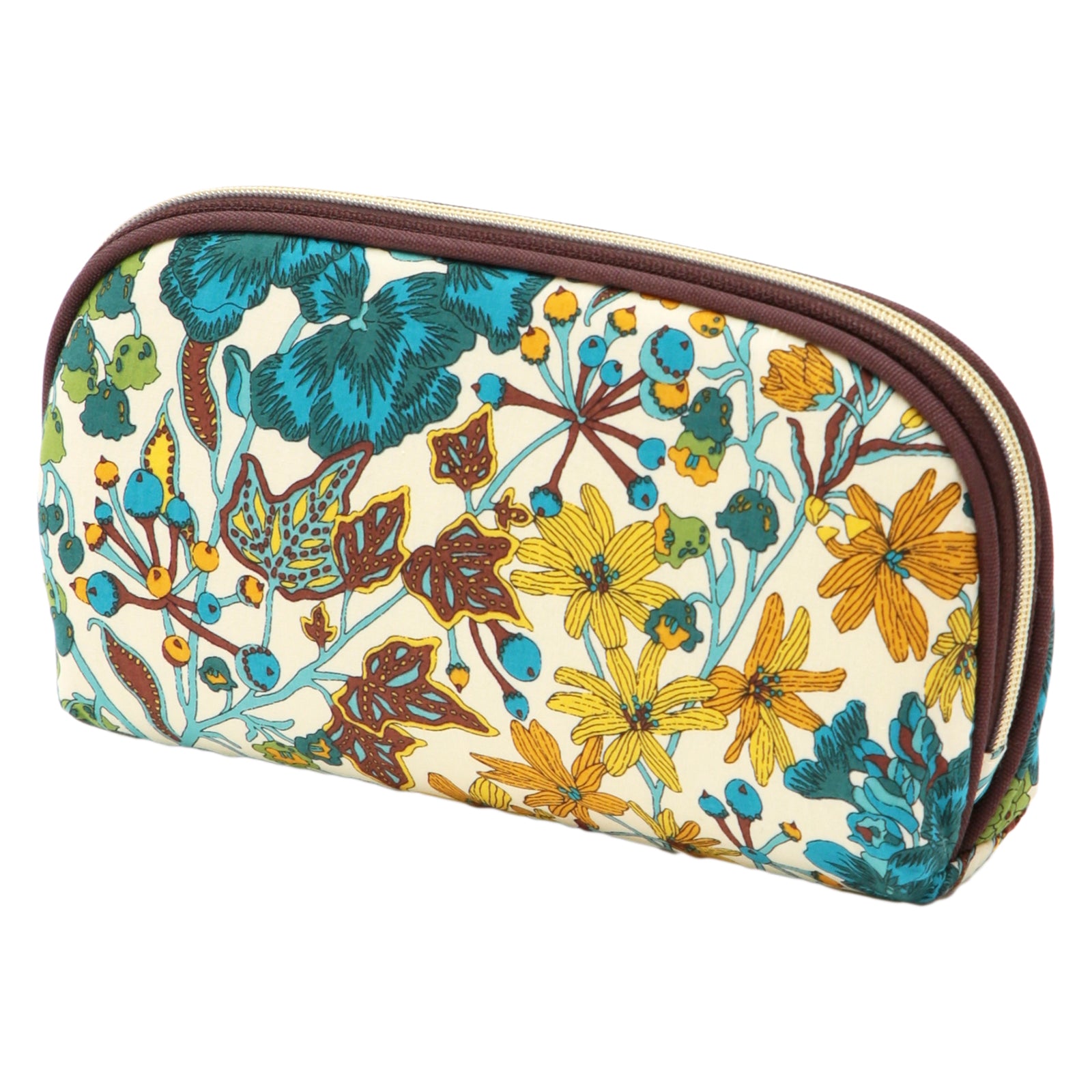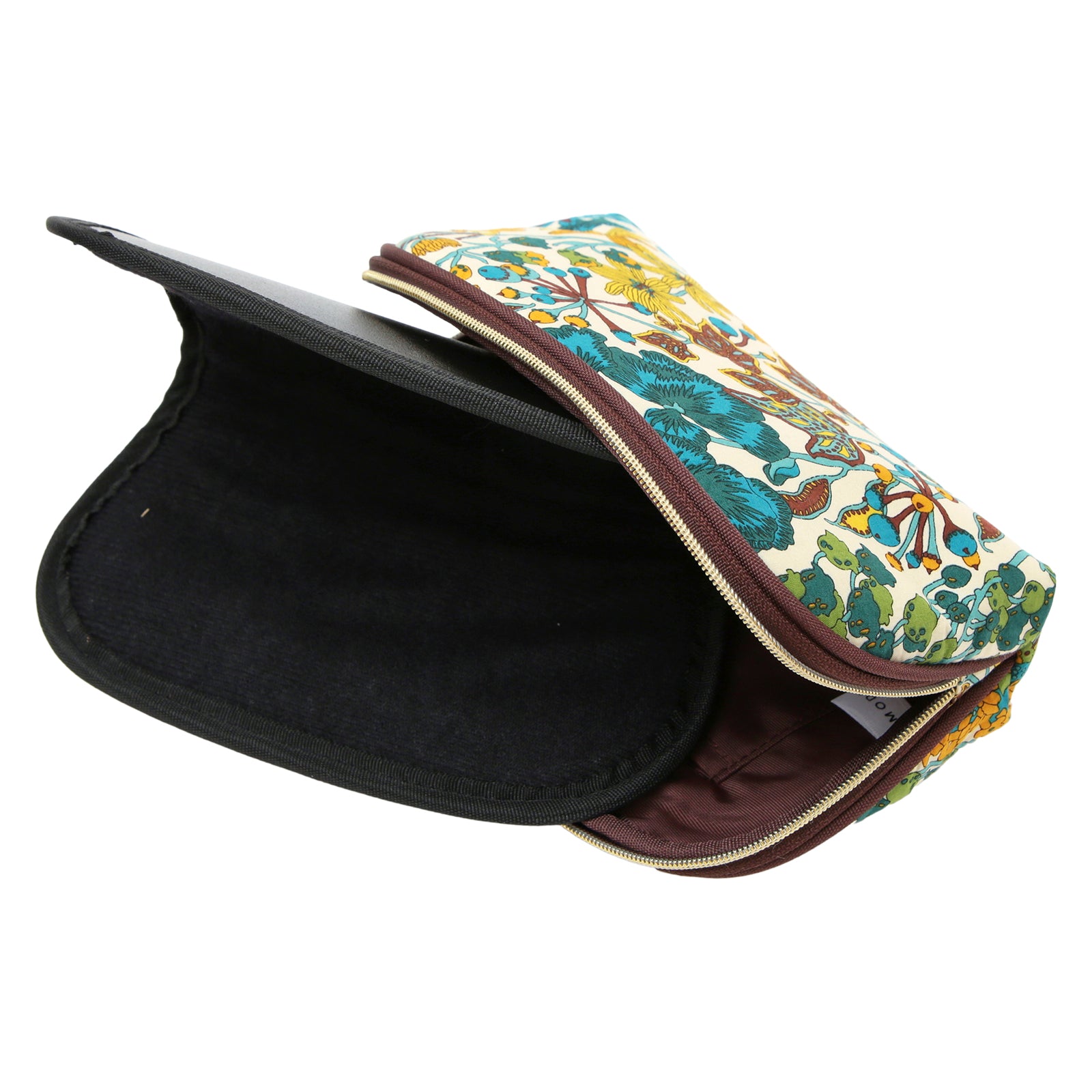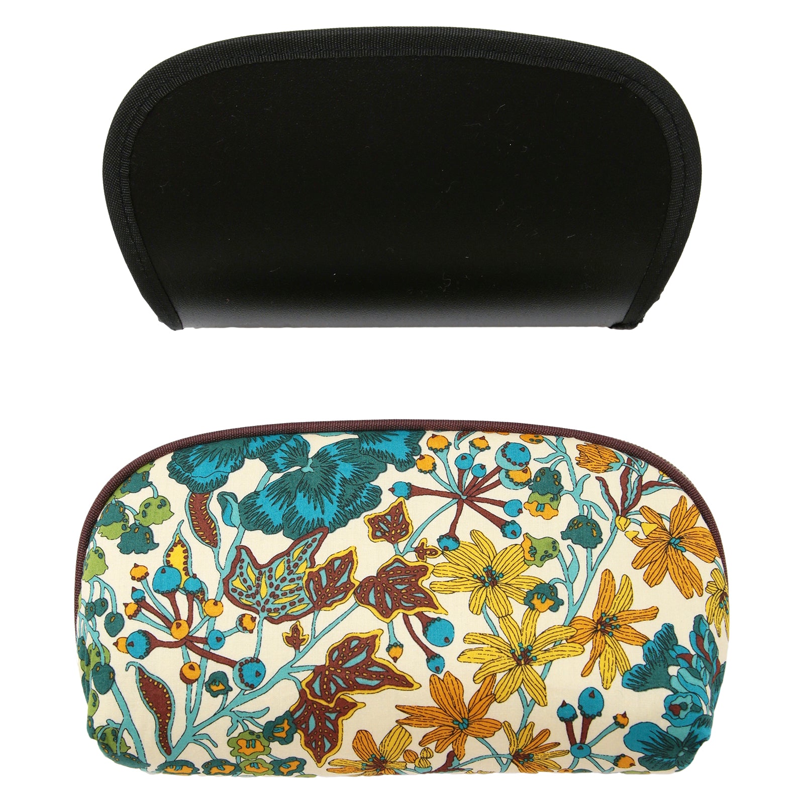 リバティプリントのタナローン生地を使用した、横長のポーチです。内側にはオープンポケットが1つ付いているので、小物の仕分けに便利です。 さらに、内側が布張りになった付属の保護板をポーチにセットすれば、しっかりとした眼鏡ケースとしてもお使いいただけます。 縦も10cmと深めなので、レンズが大きめのサングラスも入ります。 保護板を取り外せば、化粧品を入れたりペンケースにしたり、ライフスタイルに合わせて幅広く活躍します。