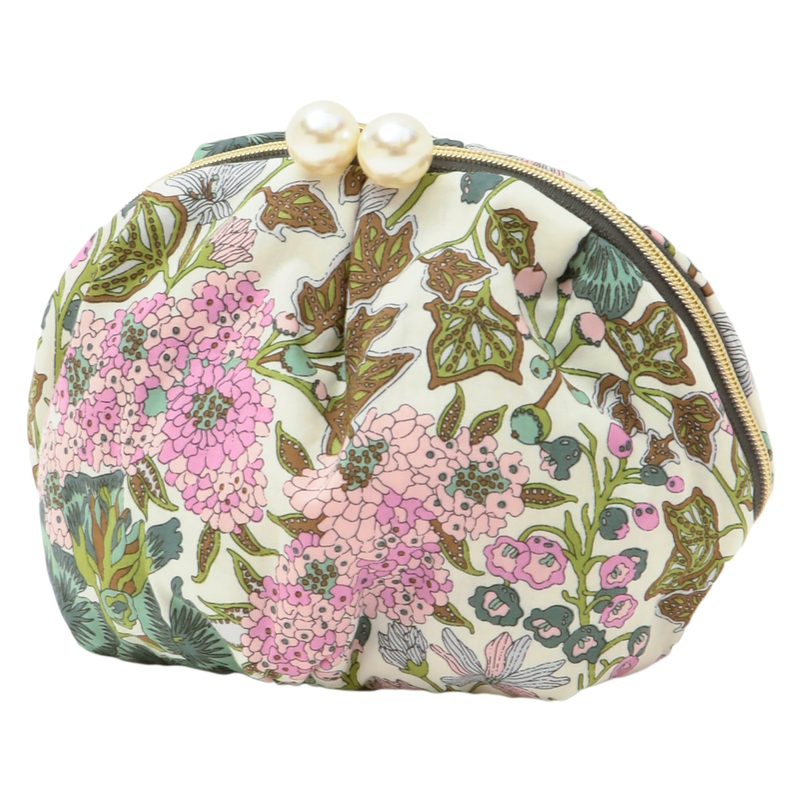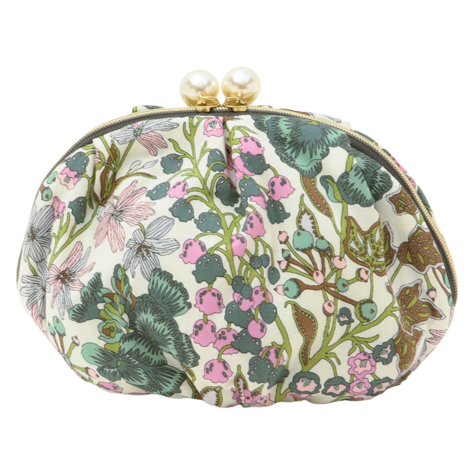 【NEW】リバティプリント  パールつきギャザーポーチ #187c Edna(エドナ) オリーブ