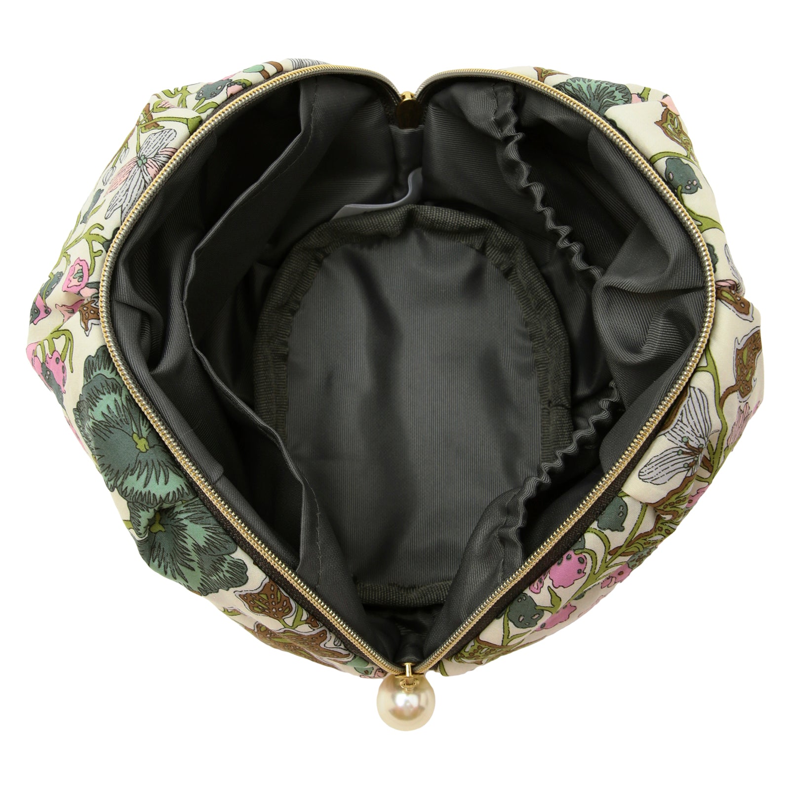 【NEW】リバティプリント パールつきギャザーポーチ #187c Edna(エドナ) オリーブ