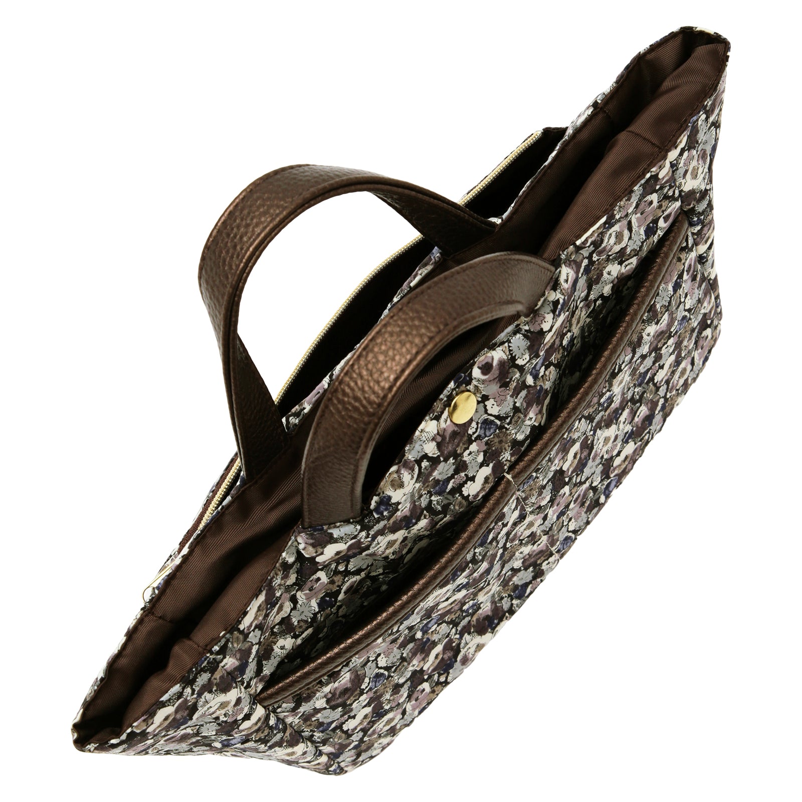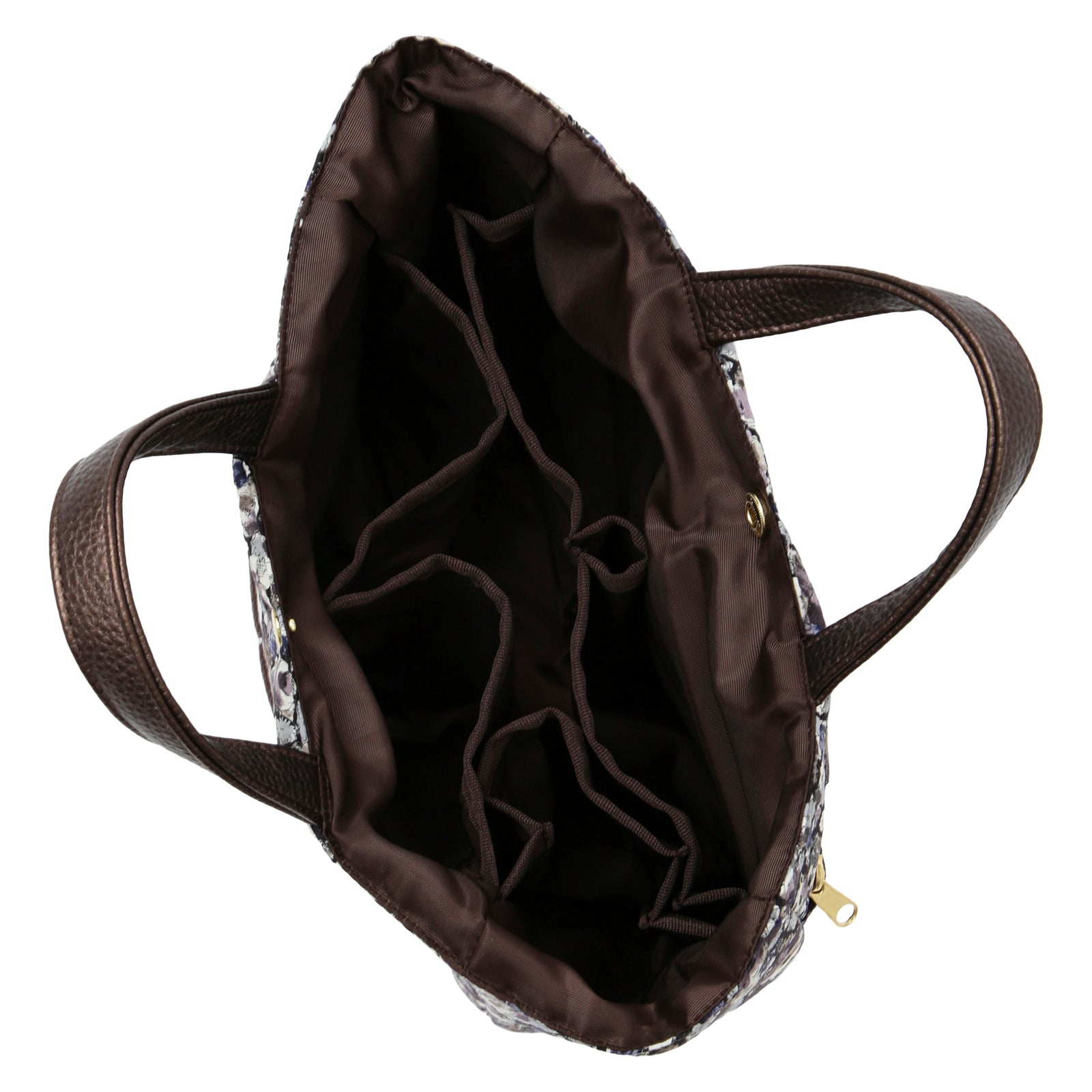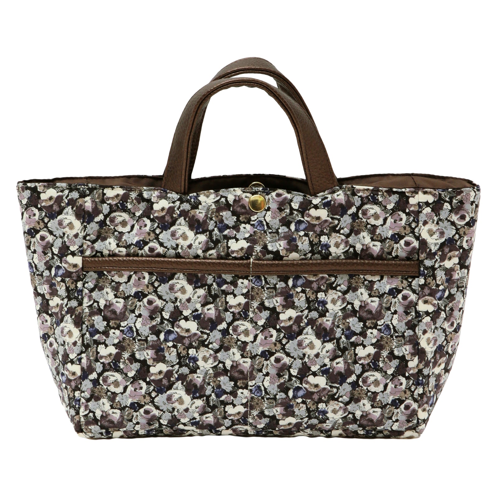リバティプリントのタナローン生地を使用した、バッグの中身をすっきり整理できるバッグインバッグです。 大小さまざまなポケットが付いているので、小物を効率的に収納できます。 いつも持ち歩くアイテムをこのバッグインバッグにまとめておけば、コーディネートや気分によってバックを変える時にも、そのまま差し替えるだけで、忘れ物の心配がなく、とても便利です。 外側にはオープンポケットが2つとファスナーポケットが1つ、内側には計5つのオープンポケットを備えており、その中の1つは350mlのペットボトルが入るスクエアポケット、残りの4つも厚みのあるものも入れられるポケットになっています。