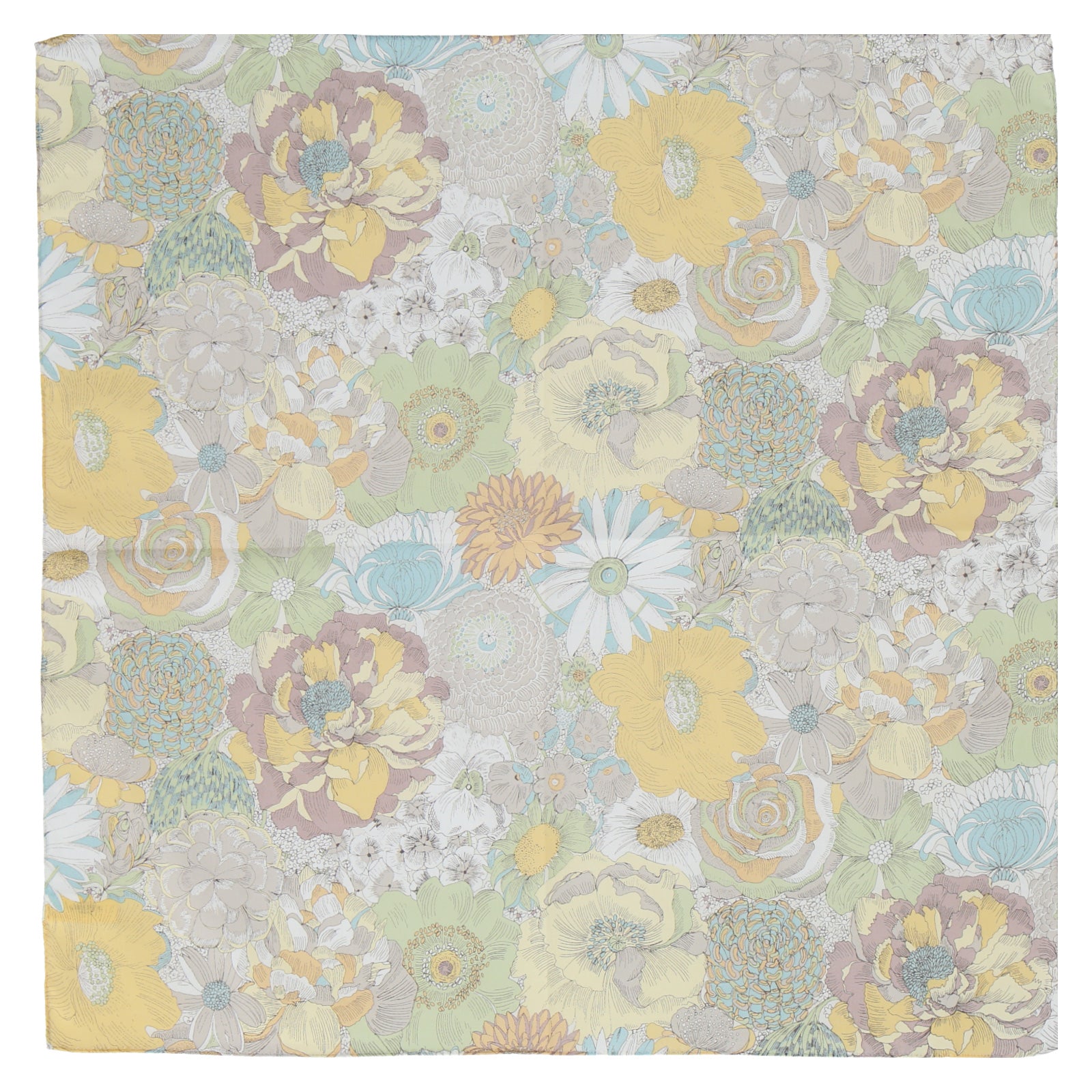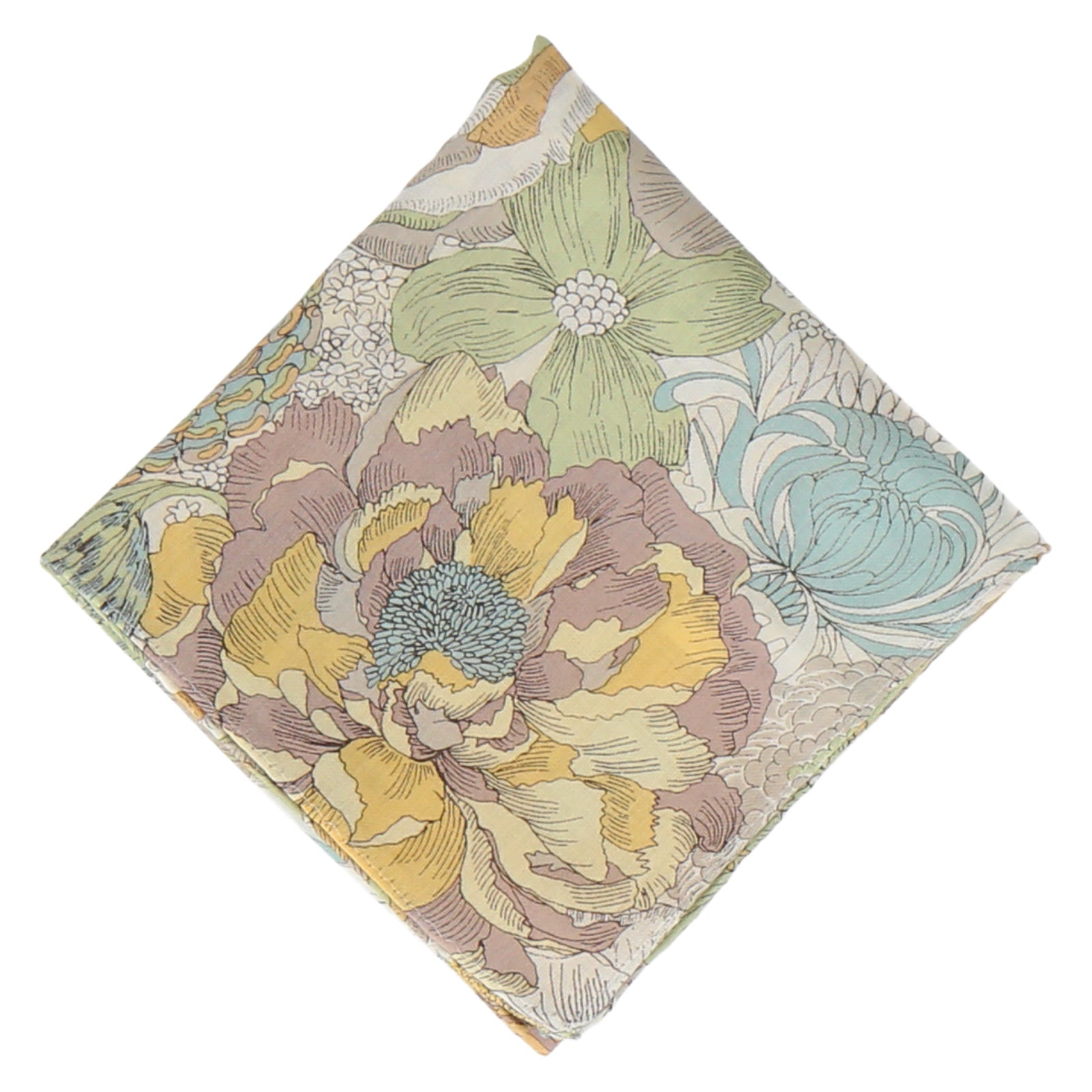 リバティプリントのハンカチ。繊細で肌触りのいい綿100%の生地に、華やかで目を惹く柄が印象的な1枚です。