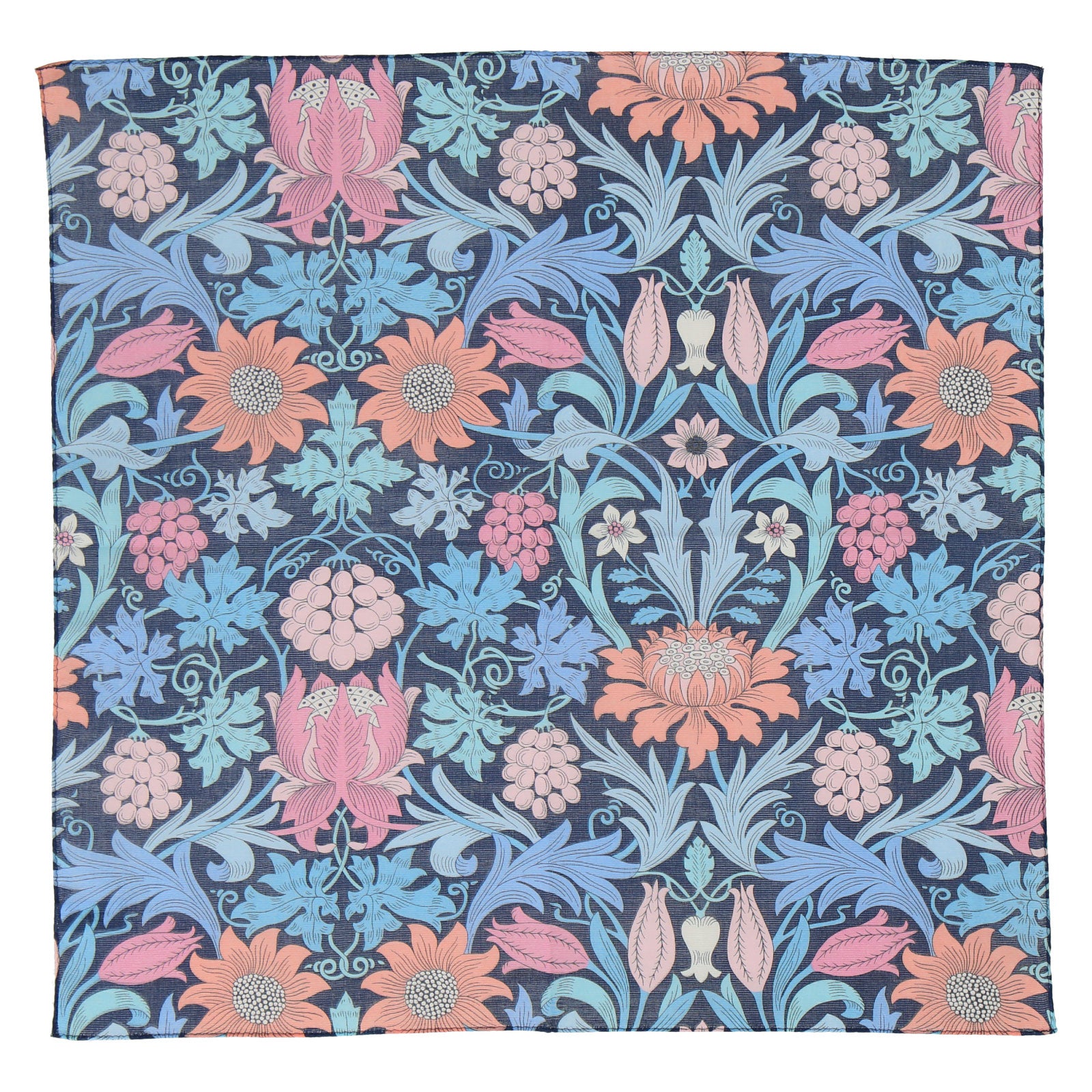 リバティプリントのガーゼハンカチ。柔らかで肌触りのいい大人のガーゼを使用しました。華やかで目を惹く柄が印象的な1枚です。