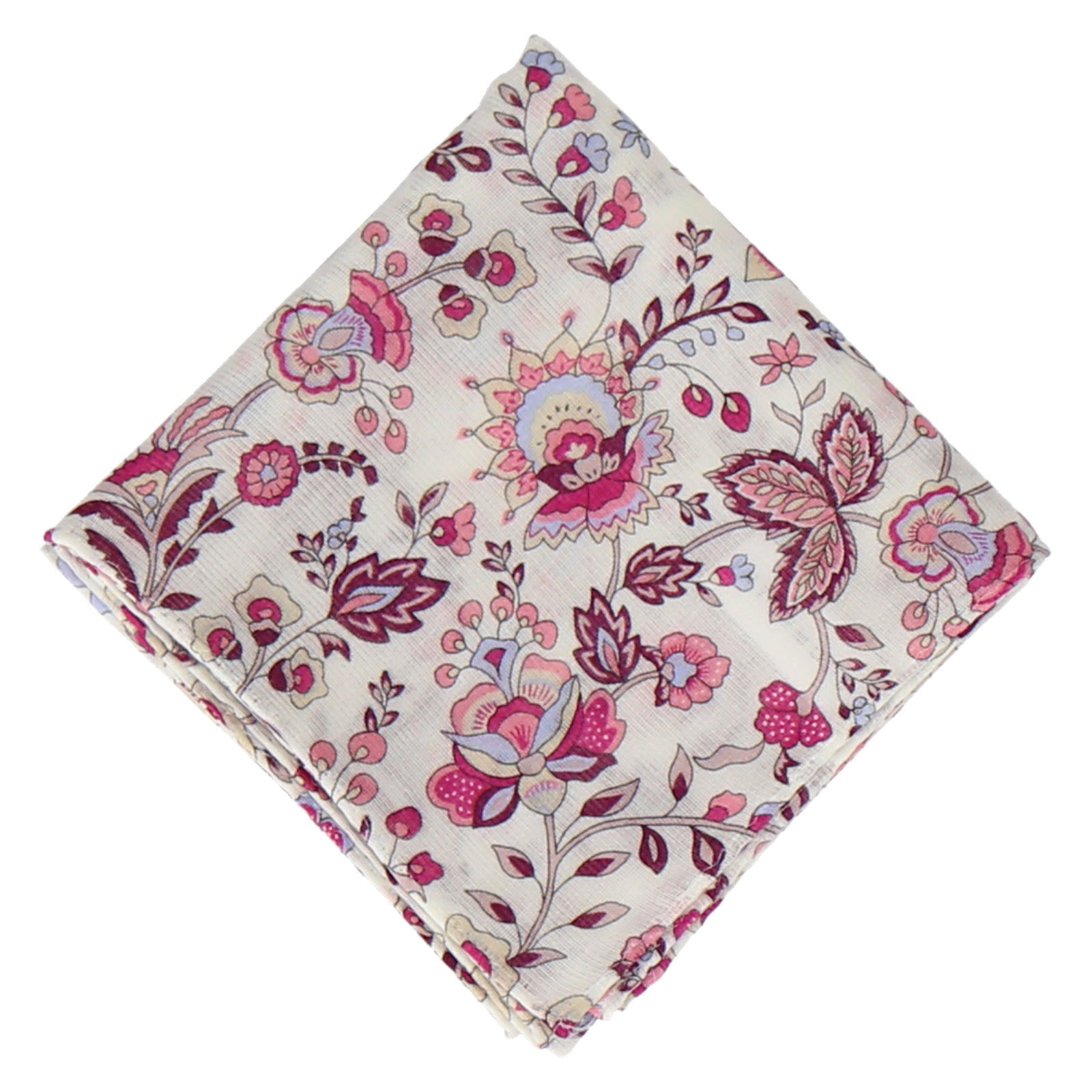 リバティプリントのガーゼハンカチ。柔らかで肌触りのいい大人のガーゼを使用しました。華やかで目を惹く柄が印象的な1枚です。