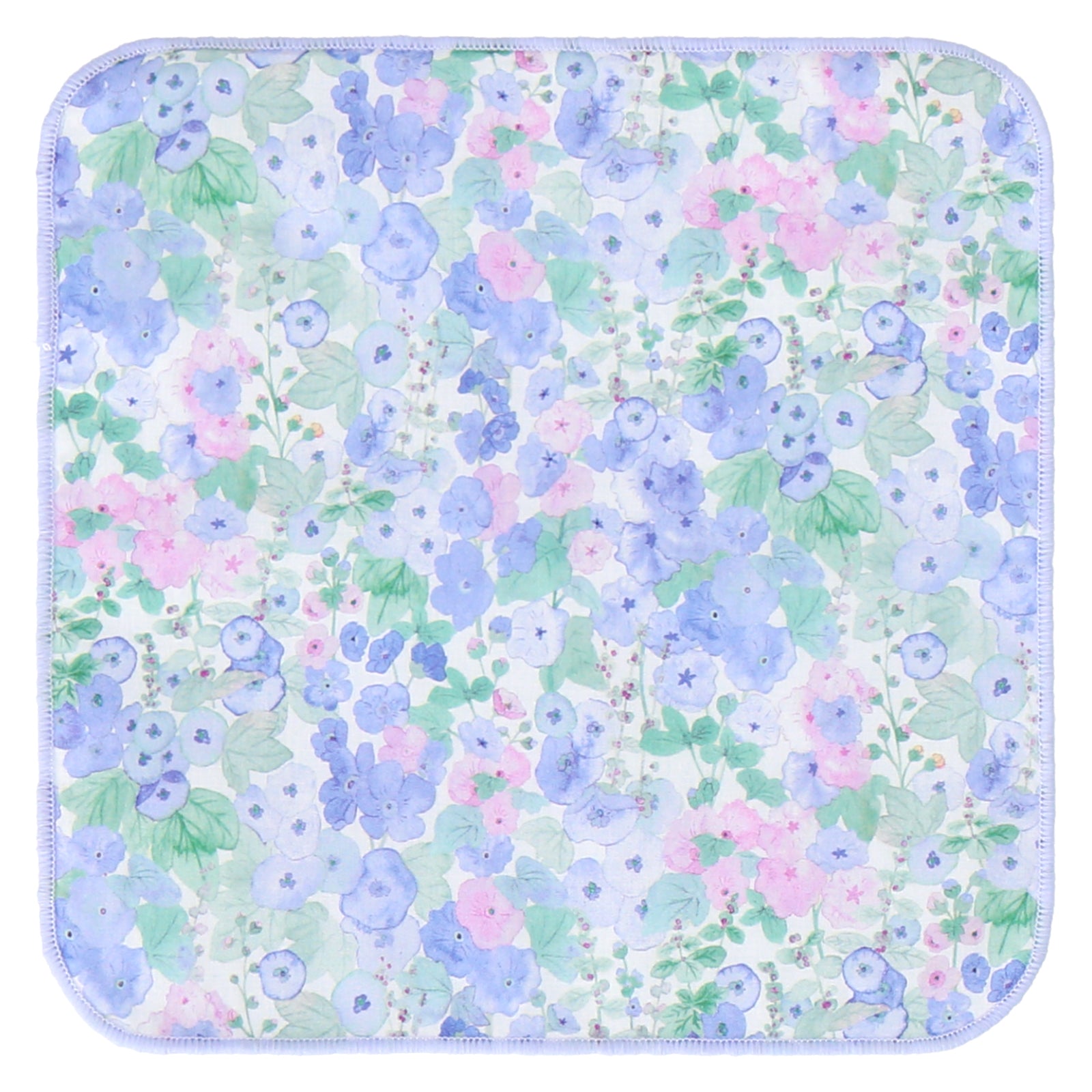 表面にリバティプリント生地を使用し、裏面がパイルになった20cmのミニタオル。ポケットやカバンの中で邪魔にならないコンパクトなサイズ感です。
