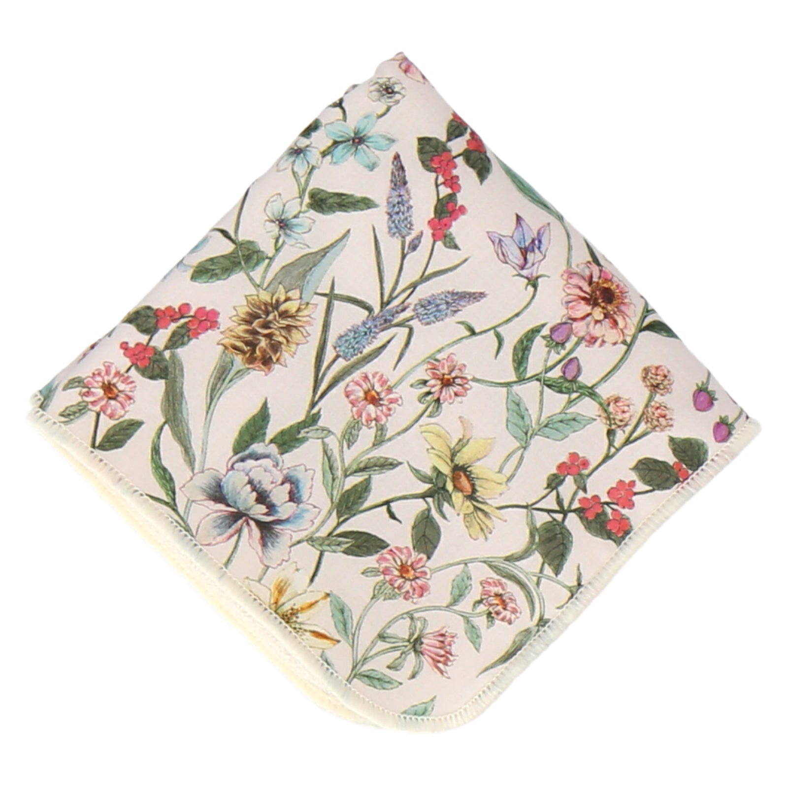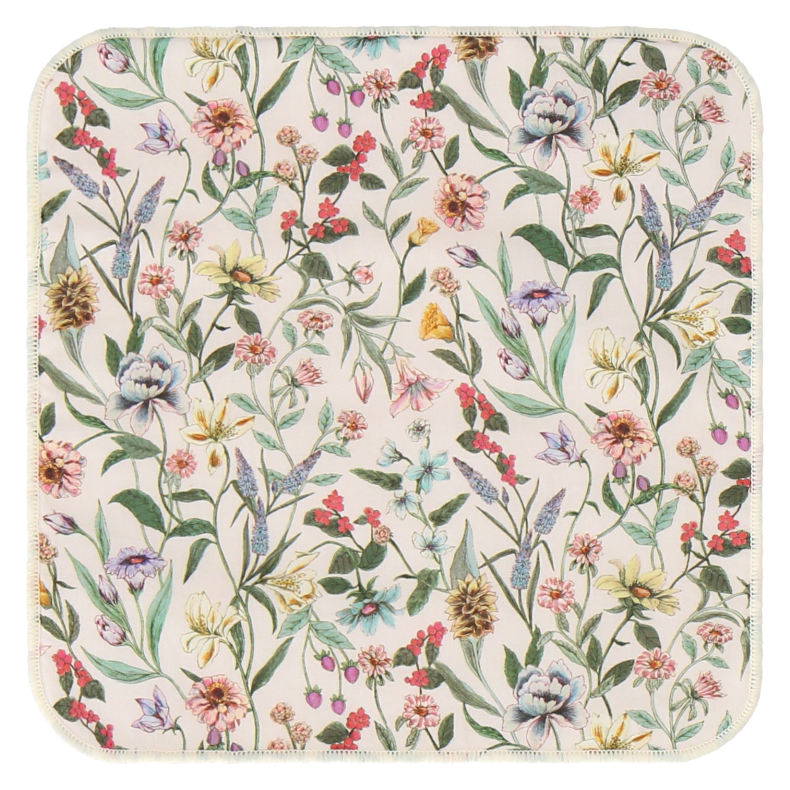 表面にリバティプリント生地を使用し、裏面がパイルになった20cmのミニタオル。ポケットやカバンの中で邪魔にならないコンパクトなサイズ感です。