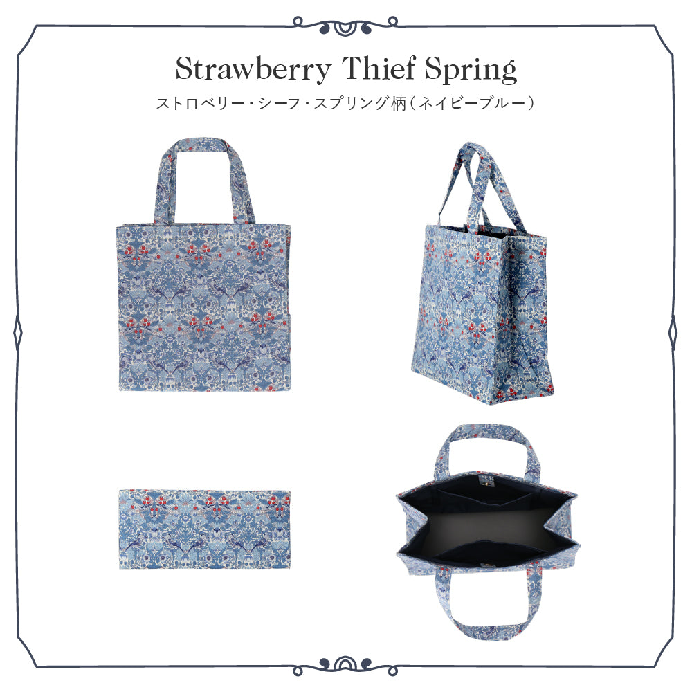 1883年にウィリアム・モリスによりデザインされた有名なプリントを新しい解釈にした「ストロベリー・シーフ・スプリング」。初めてリバティでこのデザインが使われたのは1979年のインテリア・ファブリックでした。その後タナローンのために縮小されました。典型的なアーツ&クラフツのパターンは2019年SSクラシック・レンジと、2020年のジャパン・エターナル・コレクションのために明るい背景色に変更されました。