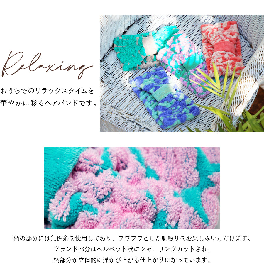 ハワイアンキルト作家キャシー中島さんプロデュースの、ハワイの代表的な植物をモチーフにした、タオルでできたヘアバンドです。 ふんわりとした肌触りで吸水性も高いからお風呂上りに最適です。 華やかなハワイアンキルト柄なので、ジムなどで汗止めに使うのもおすすめです。