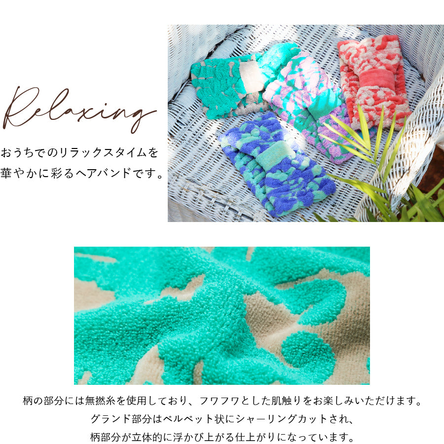 ハワイアンキルト作家キャシー中島さんプロデュースの、ハワイの代表的な植物をモチーフにした、タオルでできたヘアバンドです。 ふんわりとした肌触りで吸水性も高いからお風呂上りに最適です。 華やかなハワイアンキルト柄なので、ジムなどで汗止めに使うのもおすすめです。