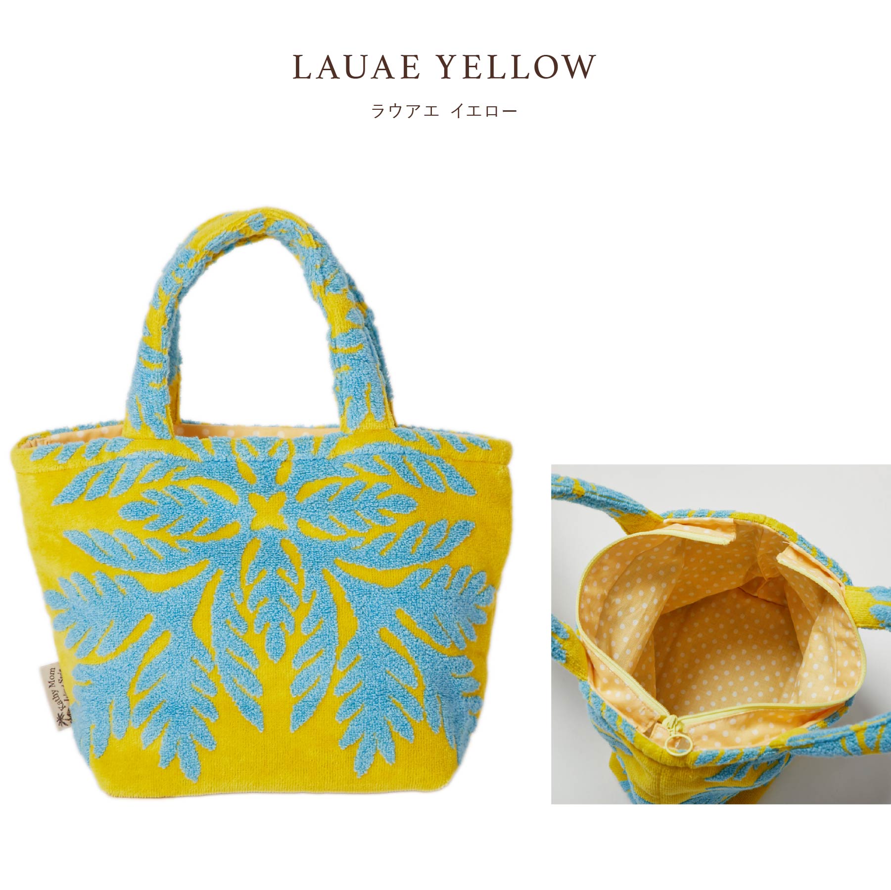 ハワイアンキルト作家キャシー中島さんプロデュースの、ハワイの代表的な植物をモチーフにした、タオルでできたランチトートです。 タオルだから濡れても気軽にお洗濯できるので安心です。(洗濯ネットをご使用ください) 開口部はファスナー式なので、中身が見えてしまわず安心です。
