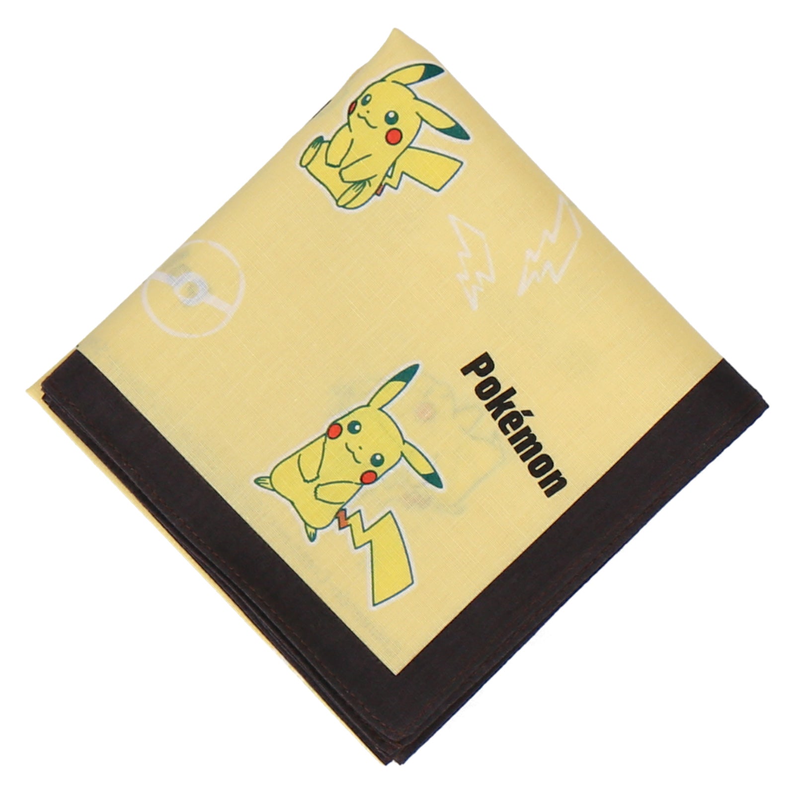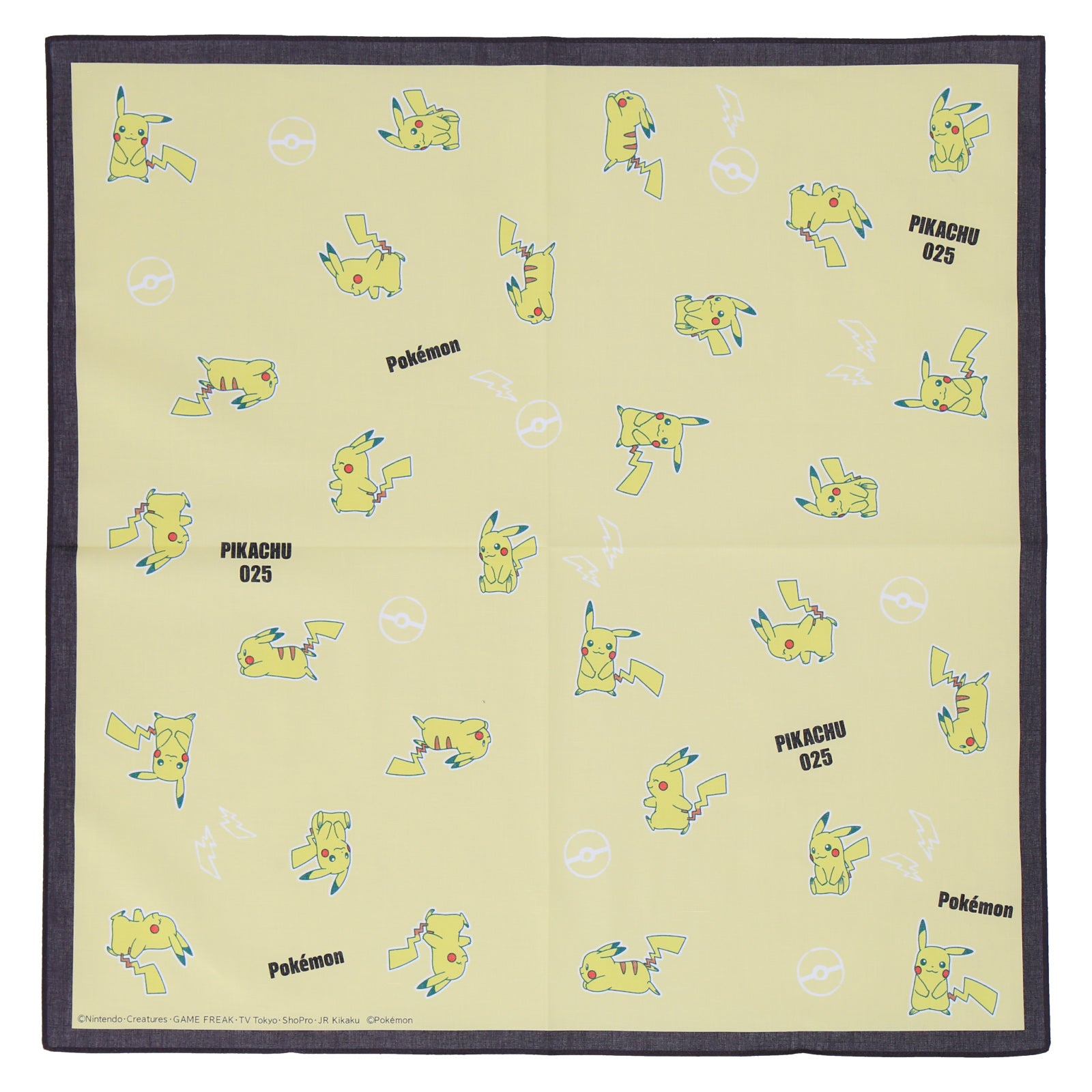 全面に描かれたピカチュウと手描きタッチのモチーフの組み合わせが可愛いプリントハンカチ。 色んな用途で使える大きめの53㎝サイズ。