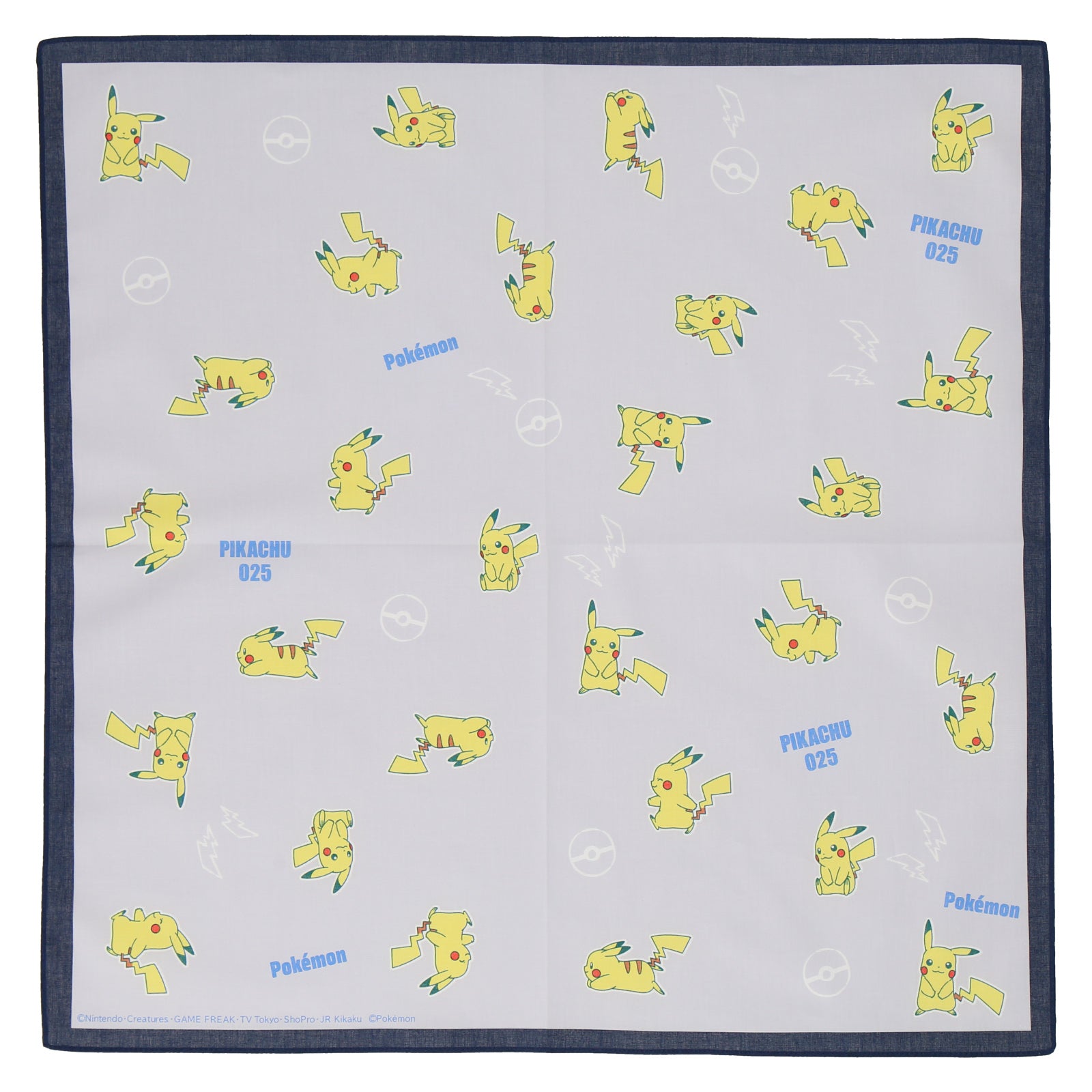 全面に描かれたピカチュウと手描きタッチのモチーフの組み合わせが可愛いプリントハンカチ。 色んな用途で使える大きめの53㎝サイズ。