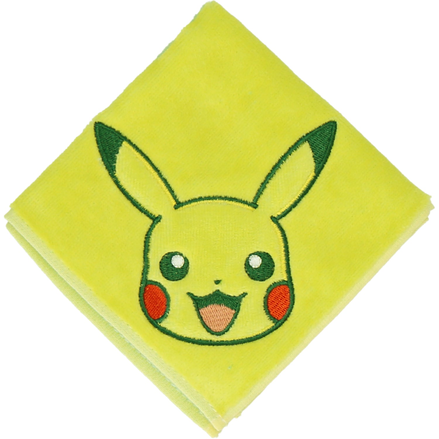 ピカチュウの顔が大きくアップリケされたタオルハンカチ。 ベースのタオルと同じ生地を使用しぷっくりとしていてふわふわとした肌触りが特徴。