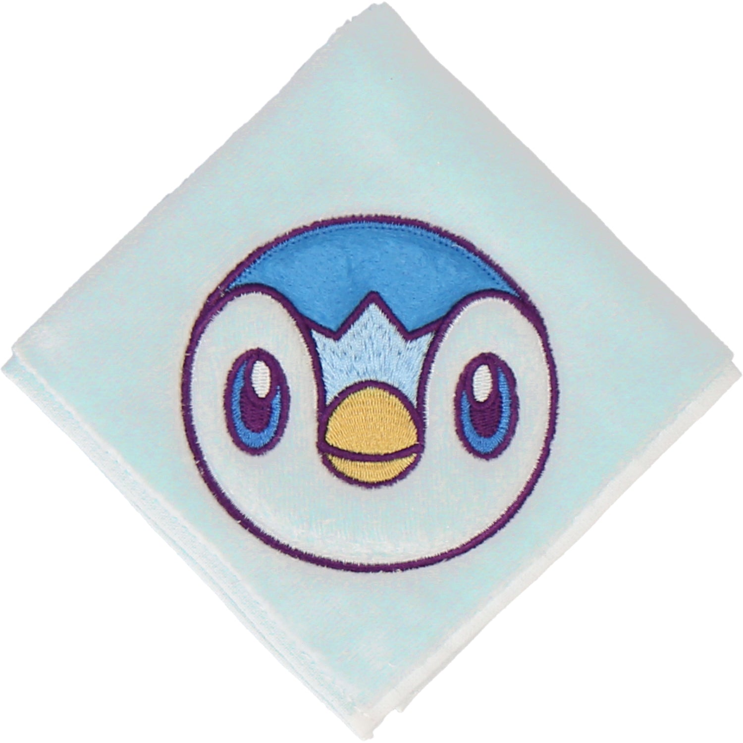 ポッチャマの顔が大きくアップリケされたタオルハンカチ。 ベースのタオルと同じ生地を使用しぷっくりとしていてふわふわとした肌触りが特徴。