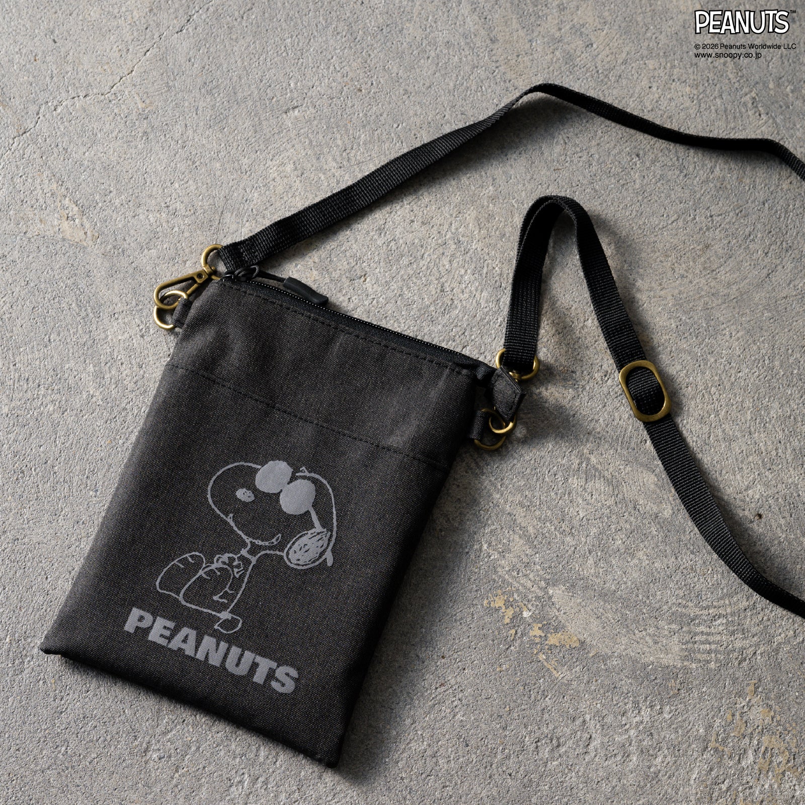 ジョー・クールのイラストがプリントされたシンプルなデザインと落ち着いた色合いが、様々なスタイルに合わせやすい縦型タイプのショルダーポーチ。内ポケット、フロントポケット付きで荷物を整理しやすいのもポイントです。