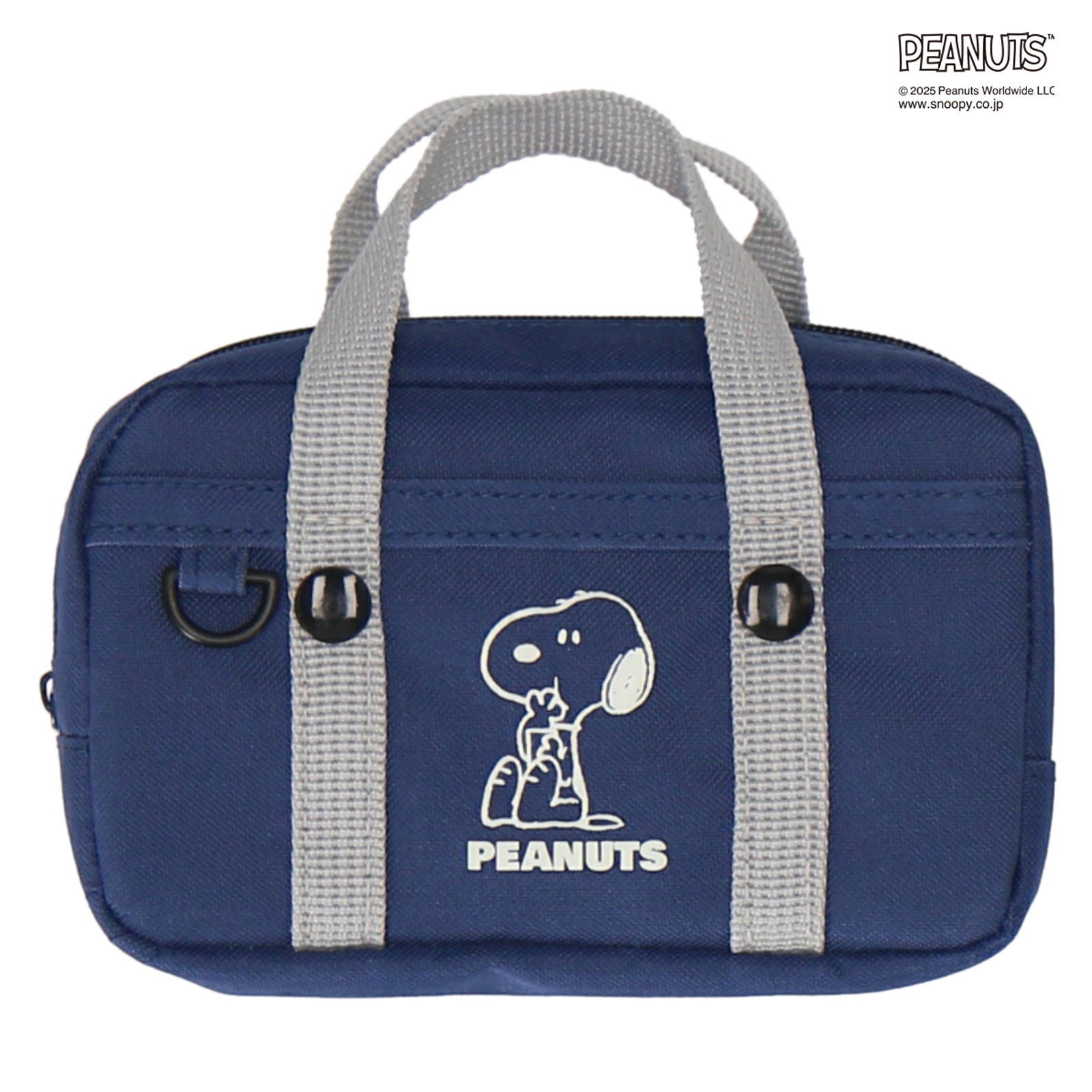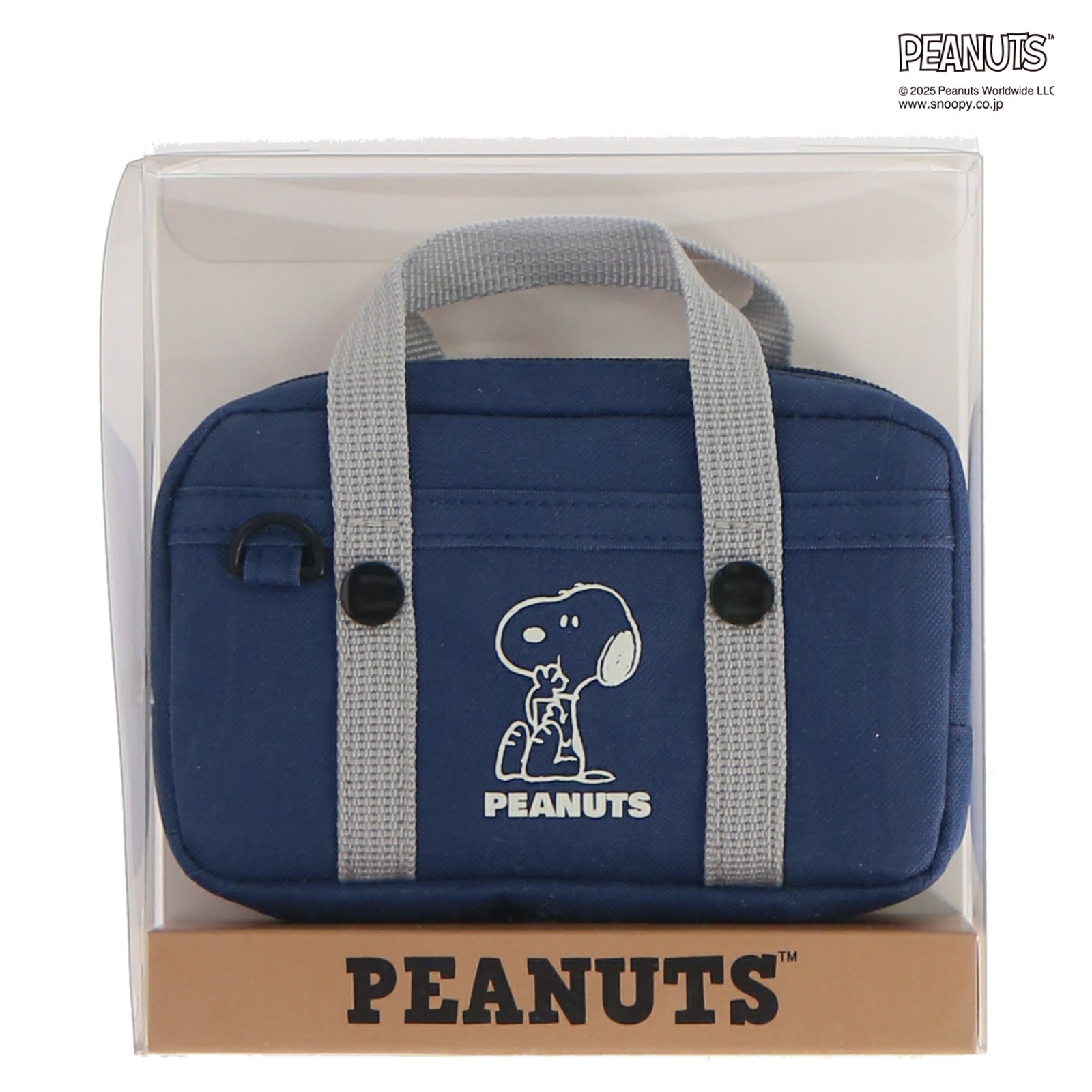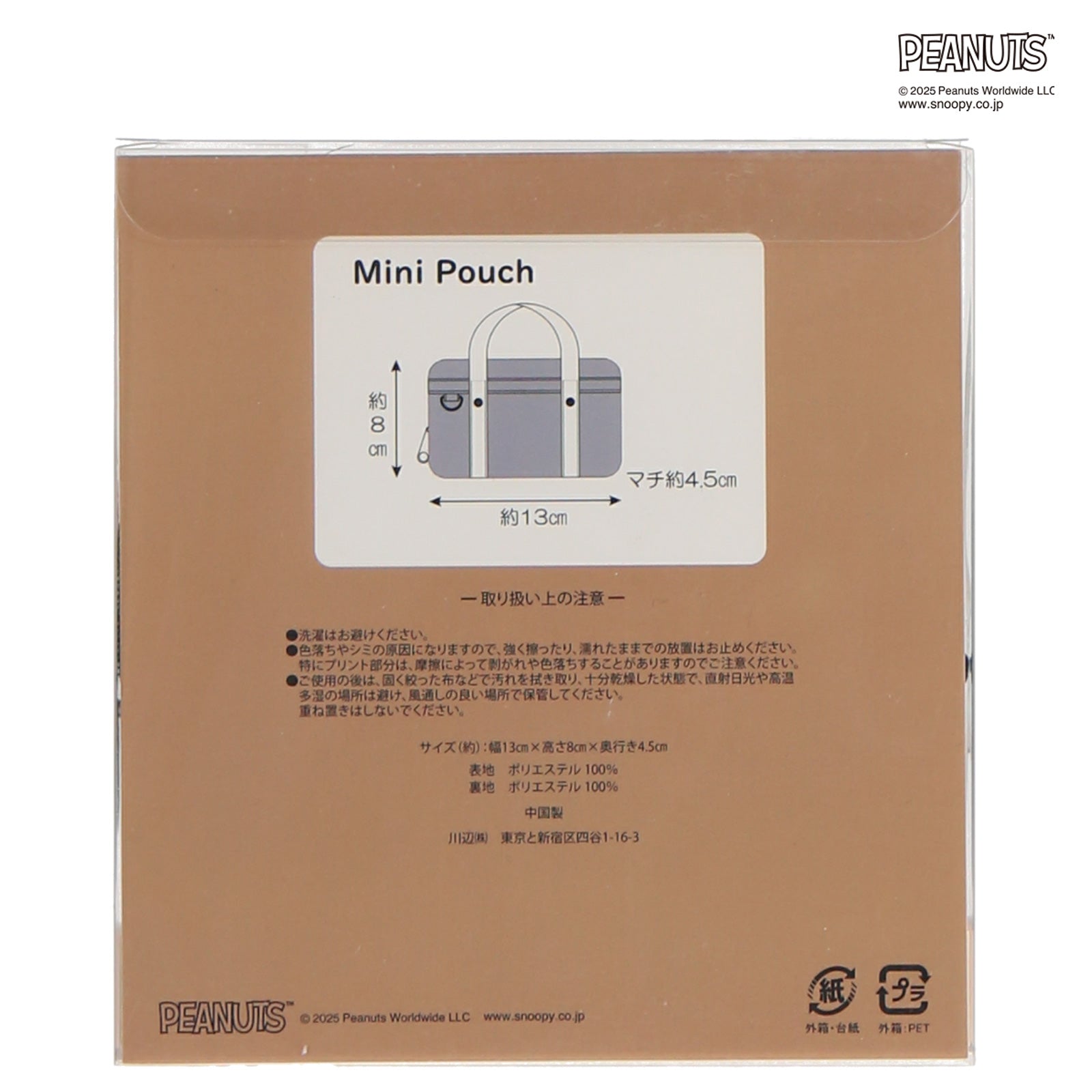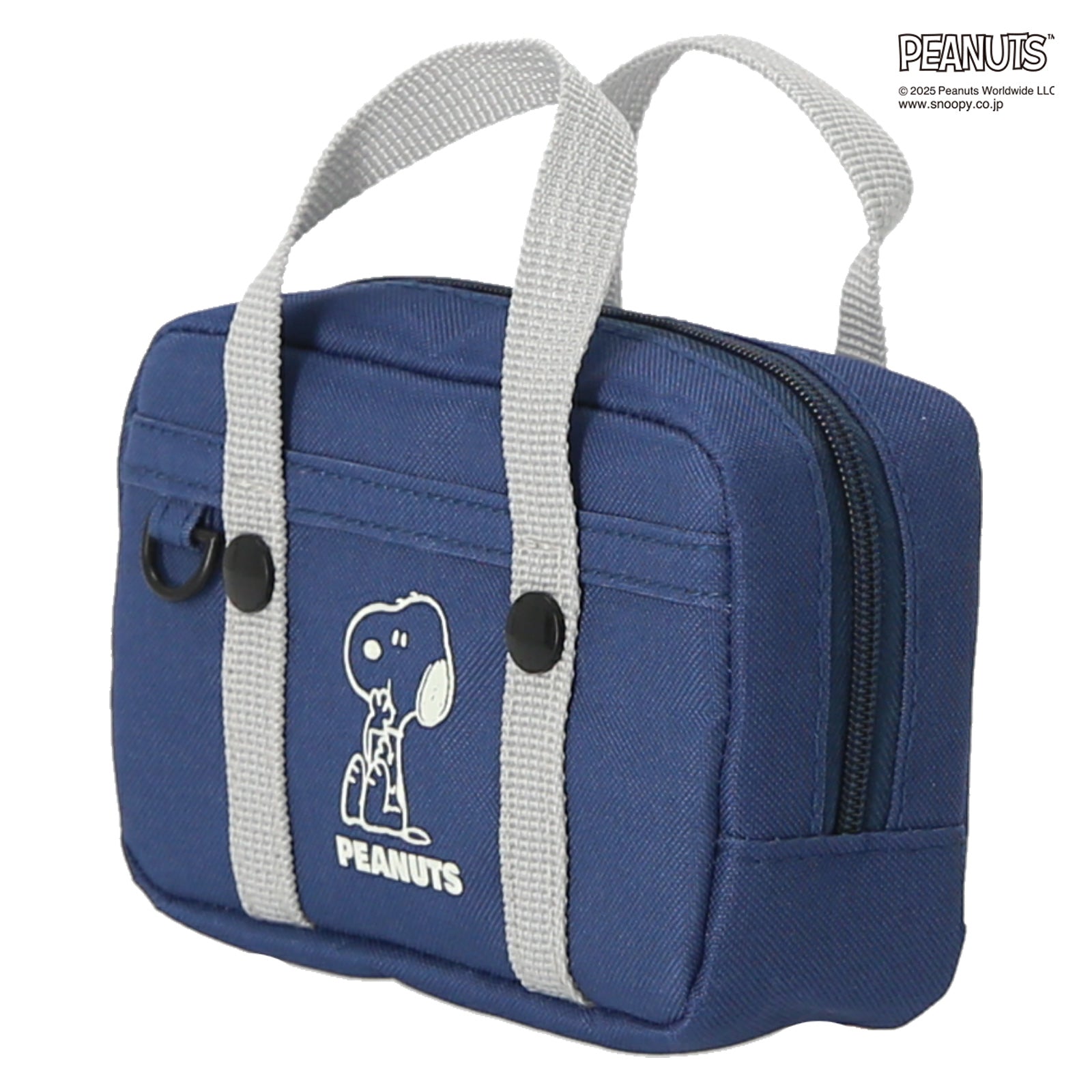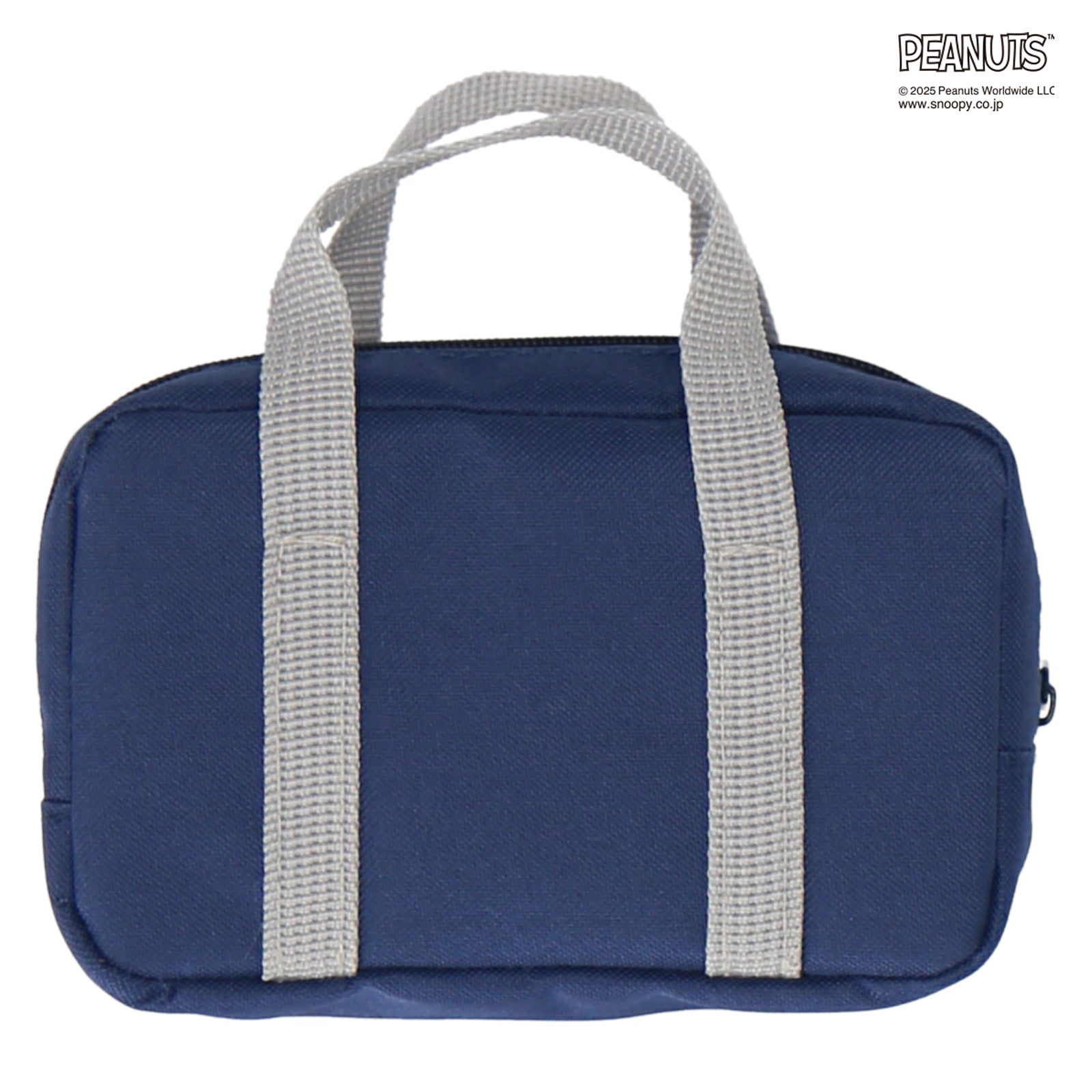 モグモグしたスヌーピーのイラストがプリントされたスクールバッグ型の可愛らしいミニサイズのポーチ。コスメや小物の収納にぴったりです。箱入りでギフトにもおすすめです。