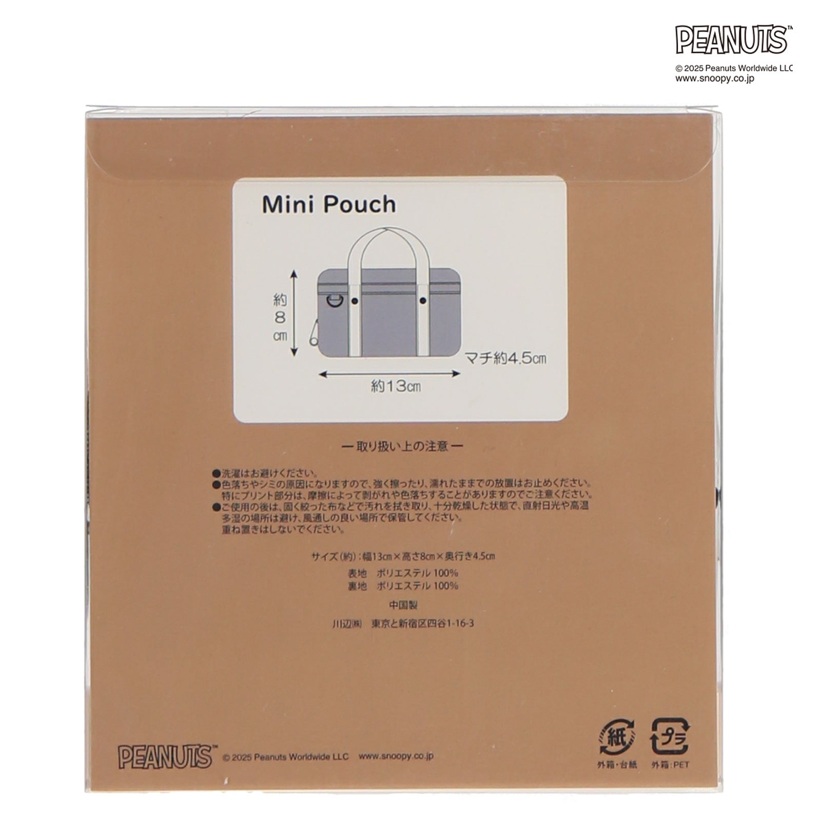 チャーリー・ブラウンとスヌーピーがプリントされたスクールバッグ型の可愛らしいミニサイズのポーチ。コスメや小物の収納にぴったりです。箱入りでギフトにもおすすめです。