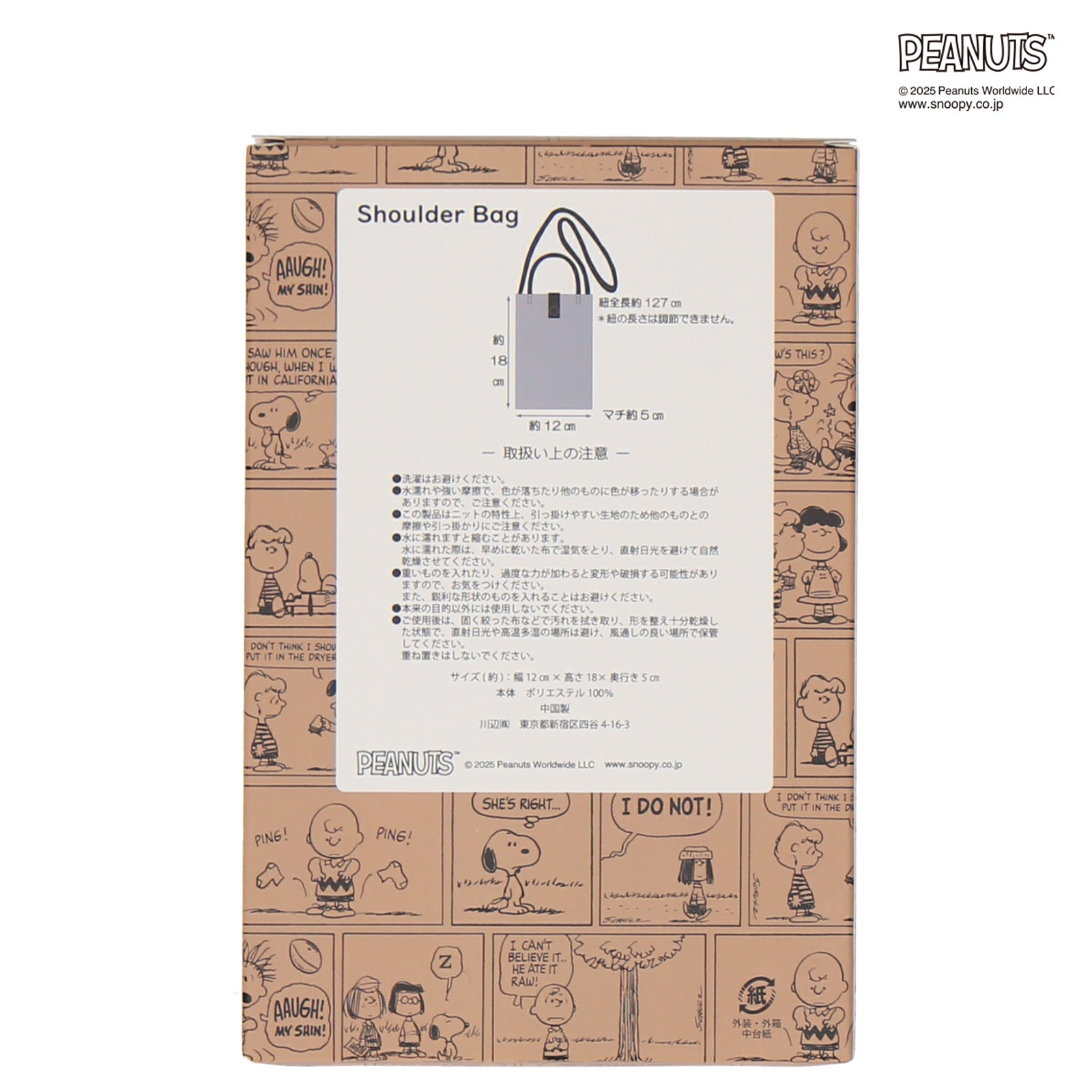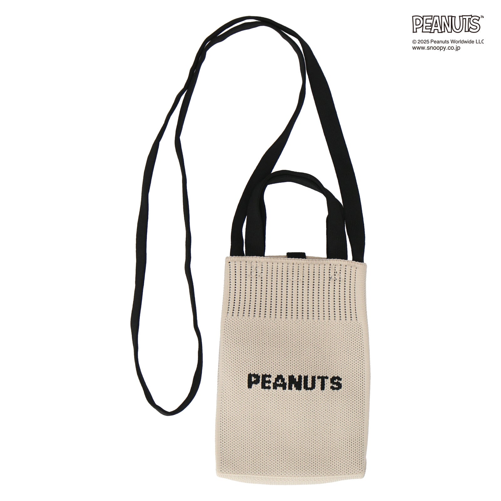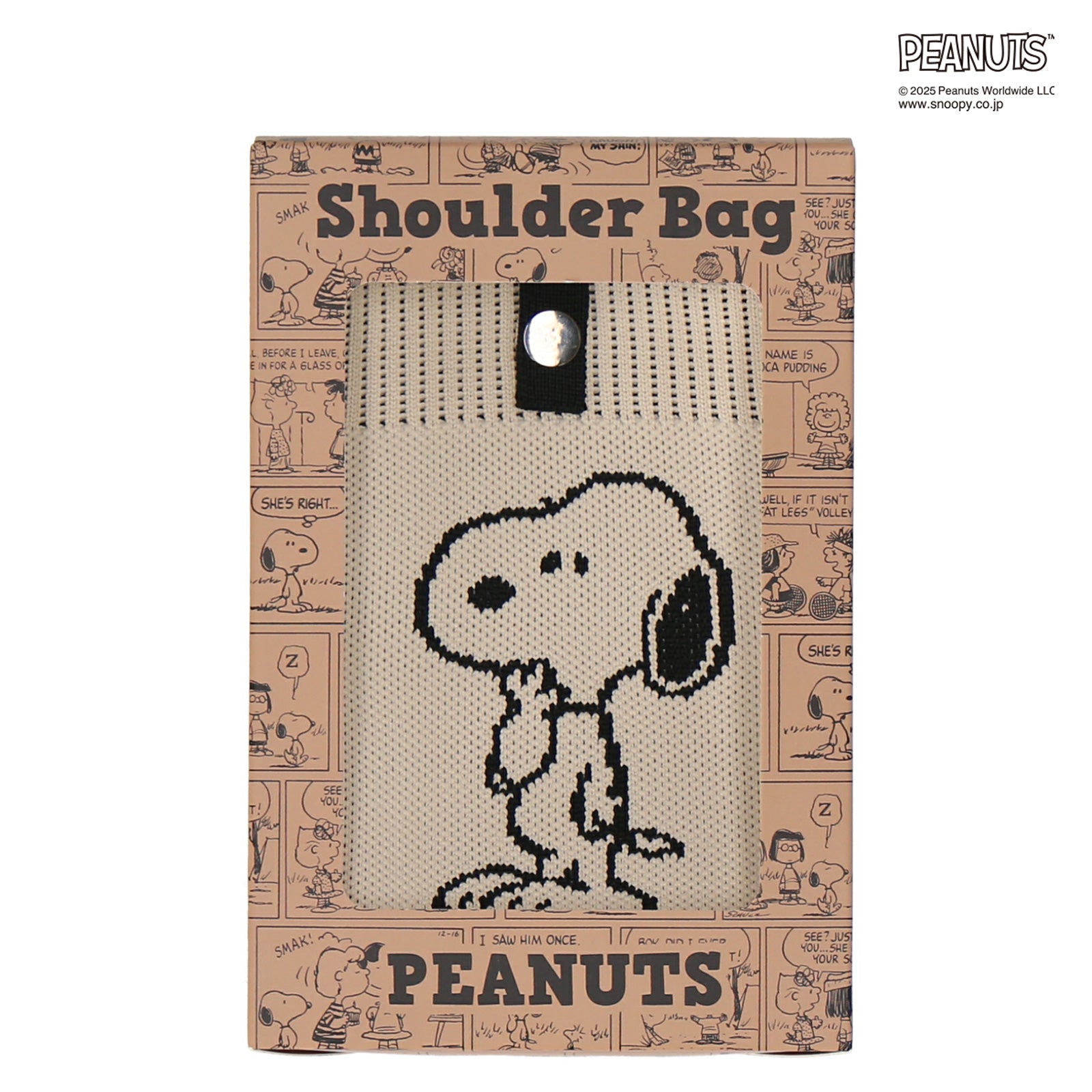 すぐに取り出して使いたいハンカチやスマホなどを入れて肩掛けができる、ニットタイプのショルダーバッグ。シンプルで可愛らしいスヌーピーのデザインと、コーディネートしやすいベーシックなカラーがポイントです。箱入りでギフトにもおすすめです。