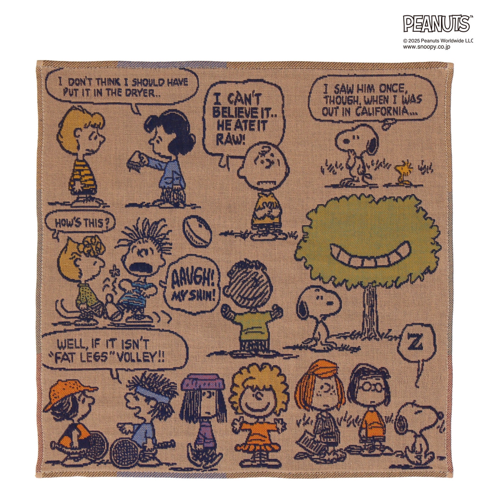 スヌーピーや仲間たちがデザインされた3重ガーゼハンカチ。プレゼントにもおすすめです。