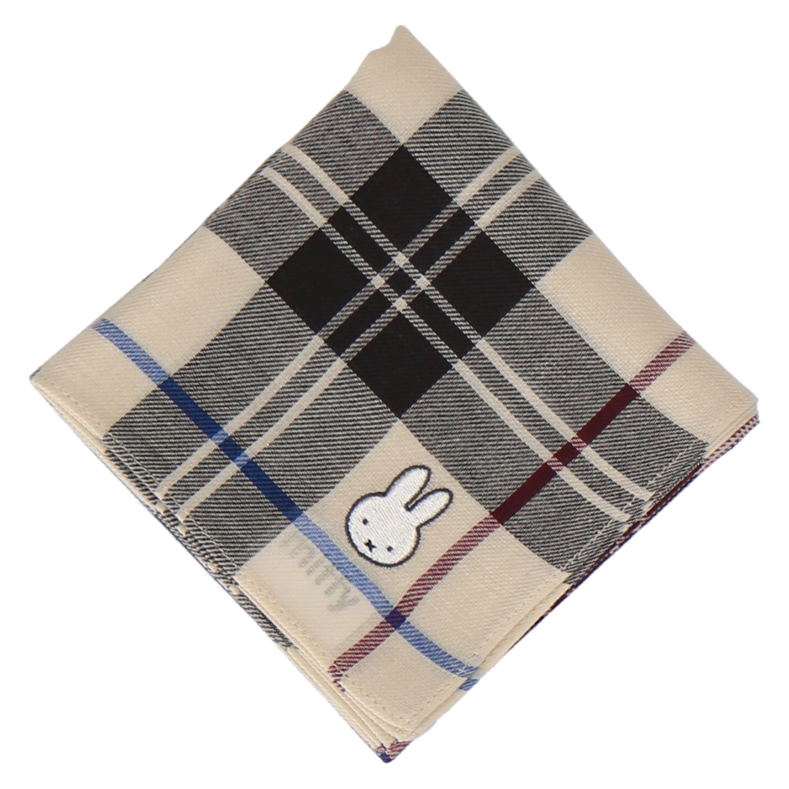 大きめなチェック柄とミッフィー、ボリスのワンポイント刺繍の組み合わせが可愛いハンカチ。プレゼントにもおすすめです。