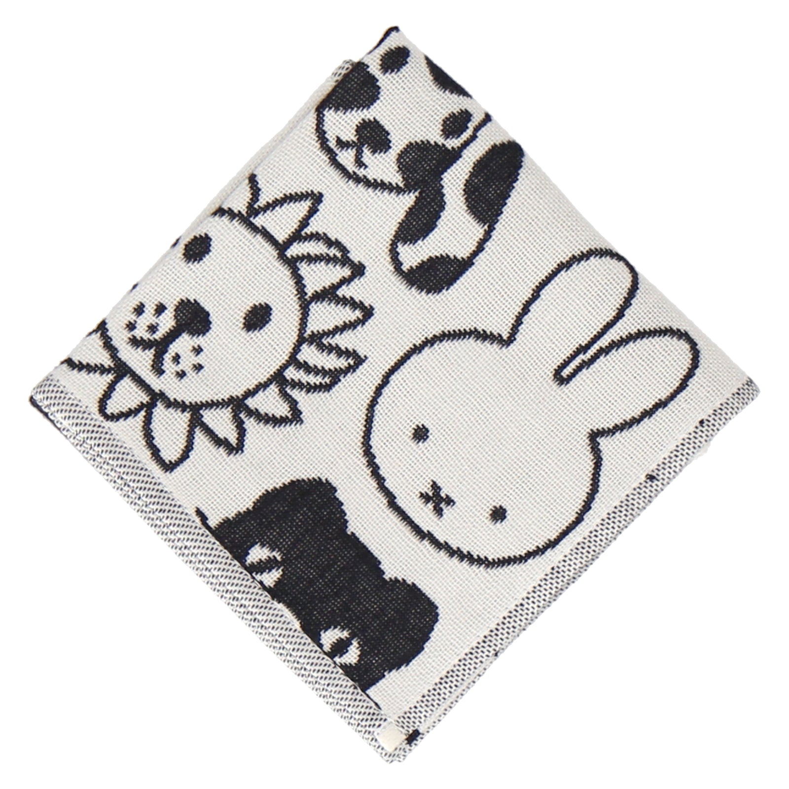 ミッフィーやボリス、どうぶつたちのフェイス柄がかわいい3重ガーゼハンカチ。モノトーンで大人も使いやすい一枚です。