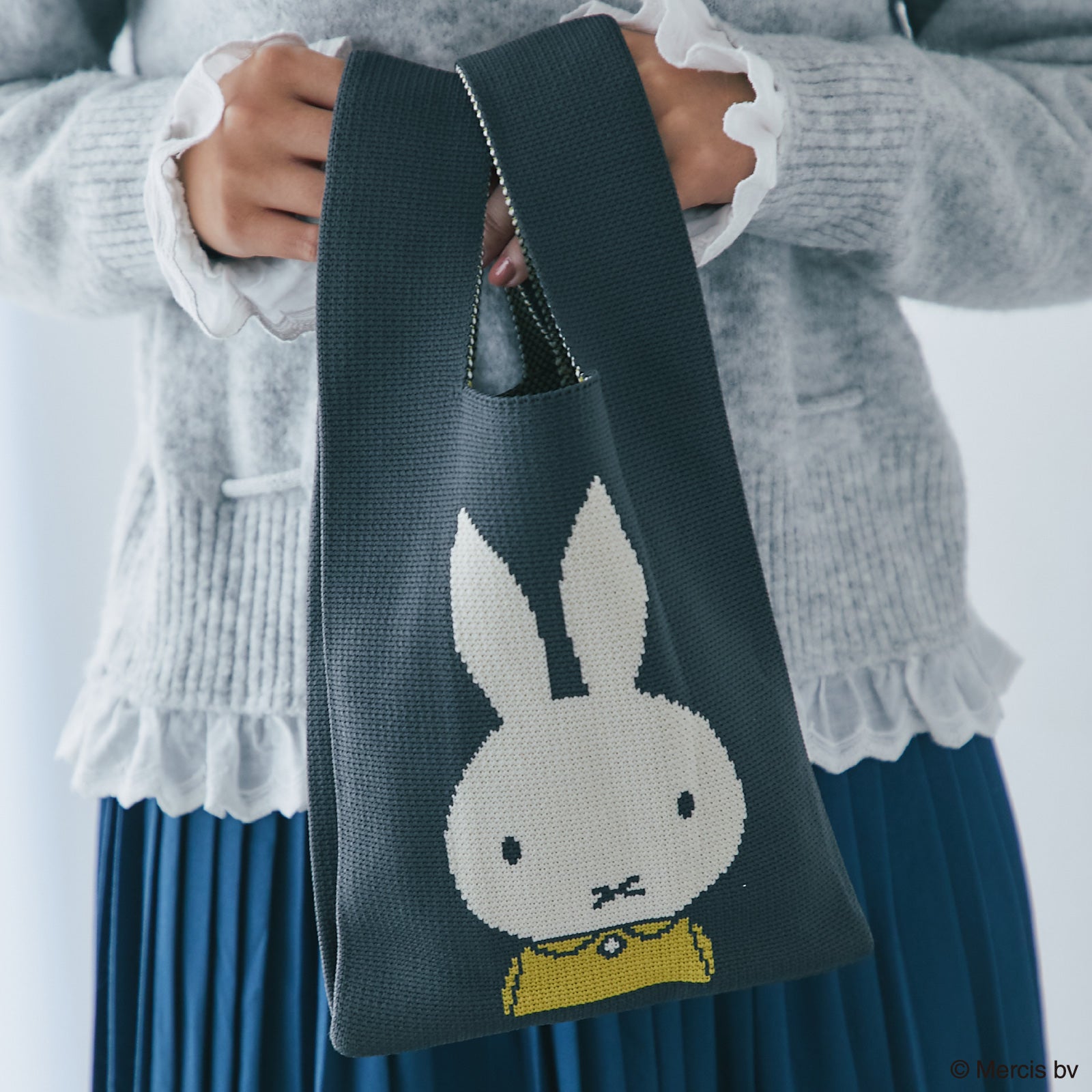 編み柄で表現されたミッフィーがかわいいニットミニバッグ。ちょっとしたおでかけに活躍しそうなサイズ感です。箱入りでギフトにもおすすめ。