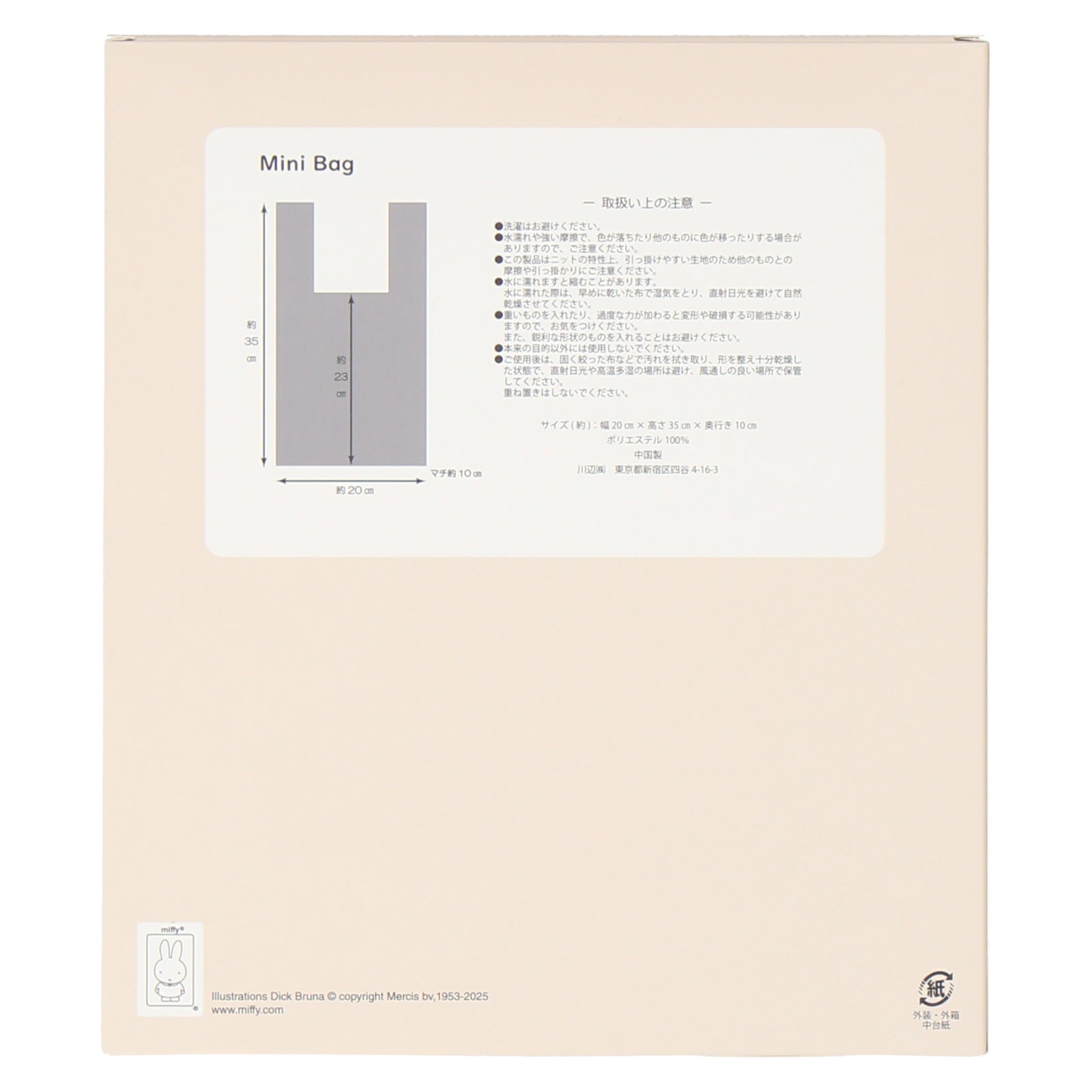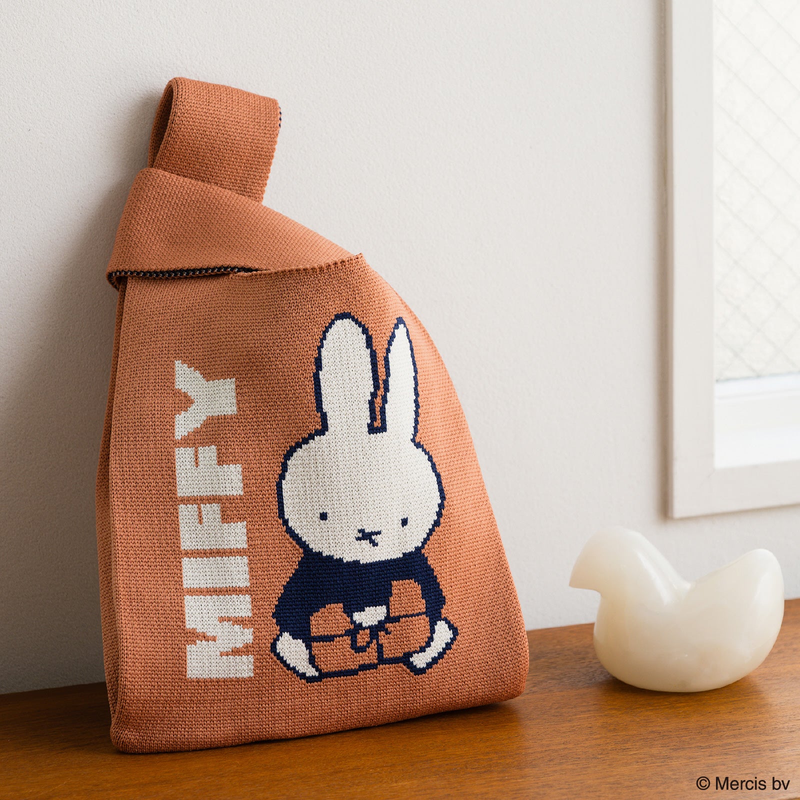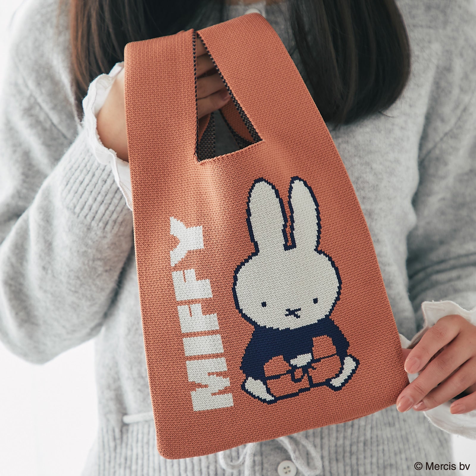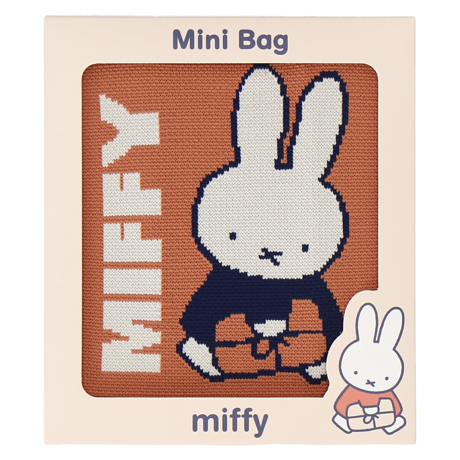 編み柄で表現されたミッフィーがかわいいニットミニバッグ。ちょっとしたおでかけに活躍しそうなサイズ感です。箱入りでギフトにもおすすめ。