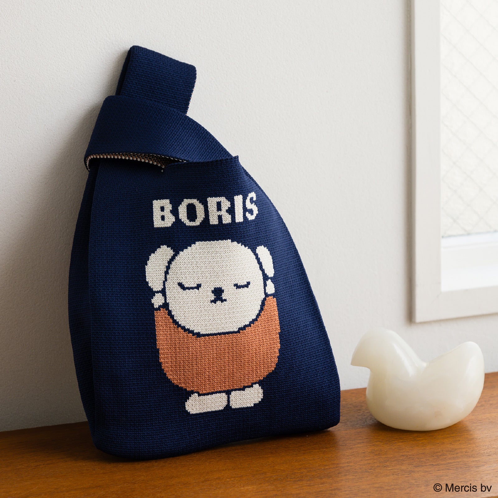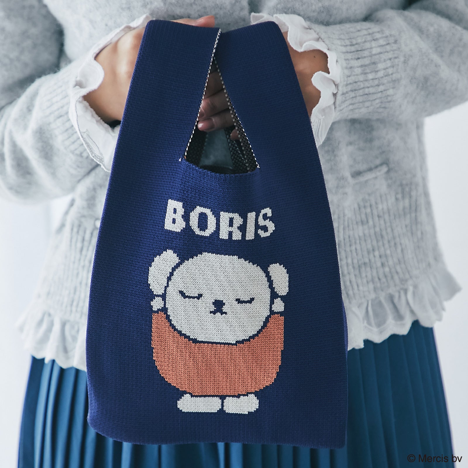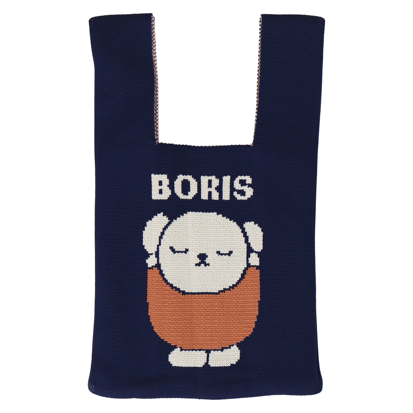 編み柄で表現されたボリスがかわいいニットミニバッグ。ちょっとしたおでかけに活躍しそうなサイズ感です。箱入りでギフトにもおすすめ。