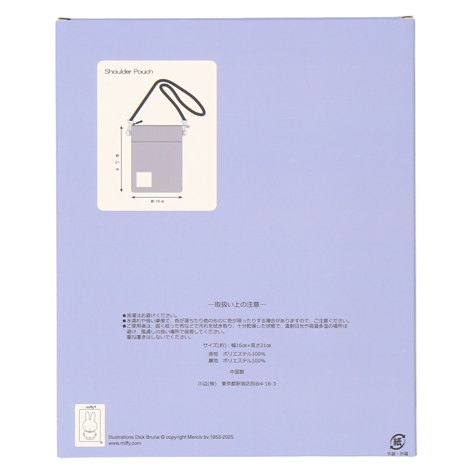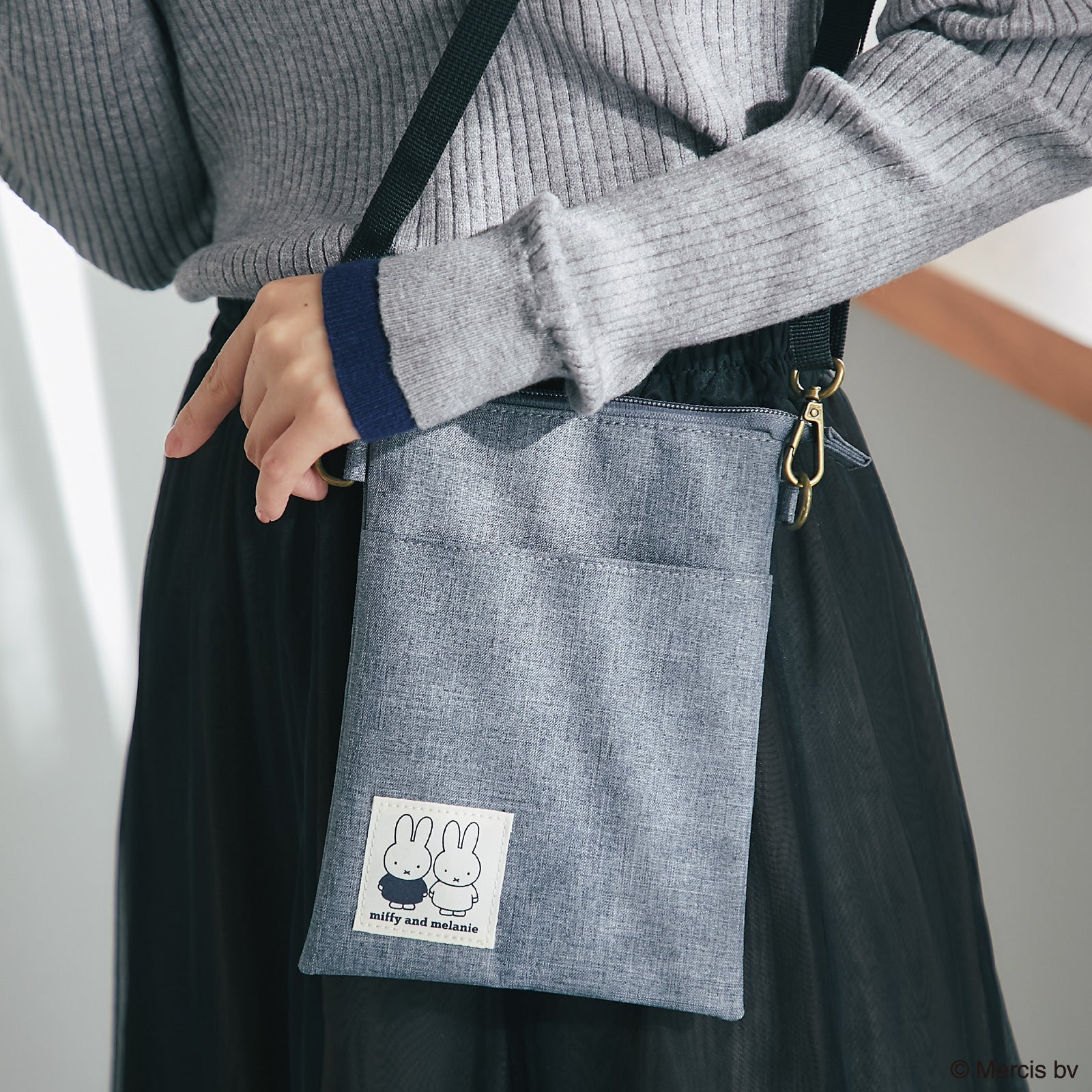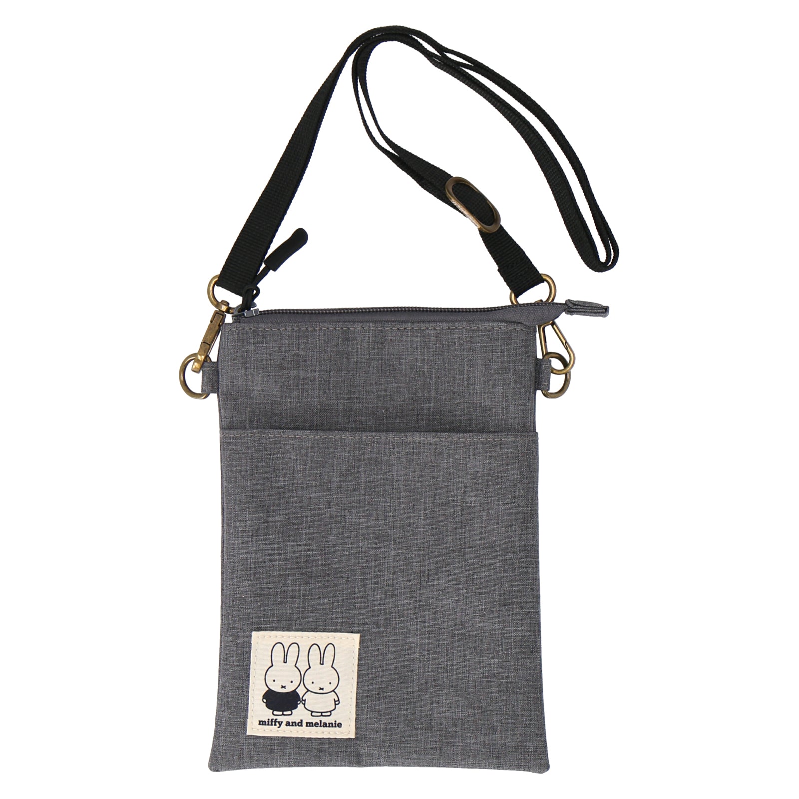 ミッフィーやボリスのプリントネームがポイントのショルダーポーチ。落ち着いた色合いでコーディネートに合わせやすいデザインです。内ポケット、フロントポケット付きで荷物を整理しやすいのもポイント。
