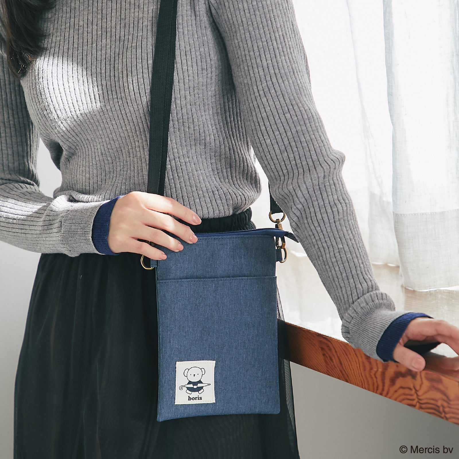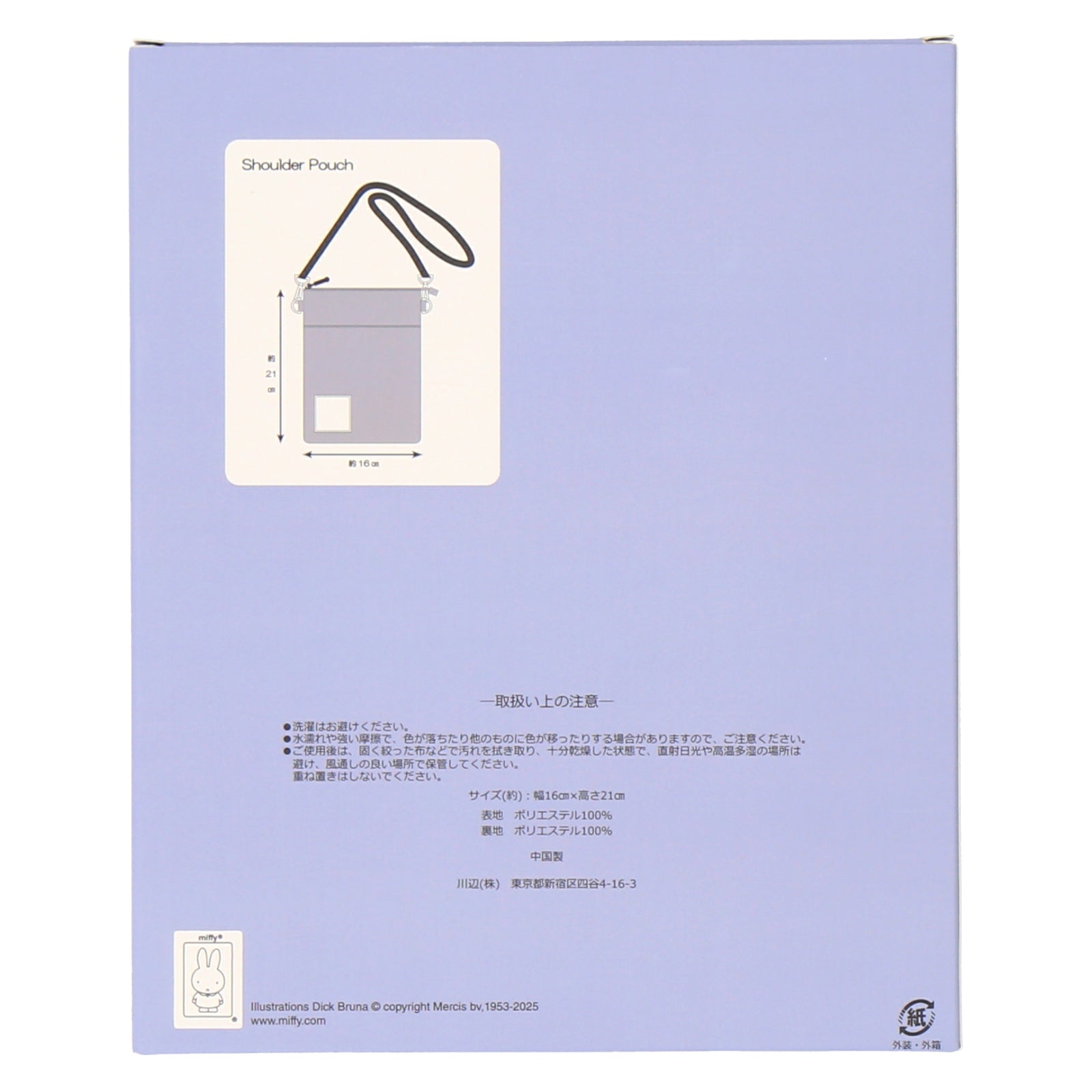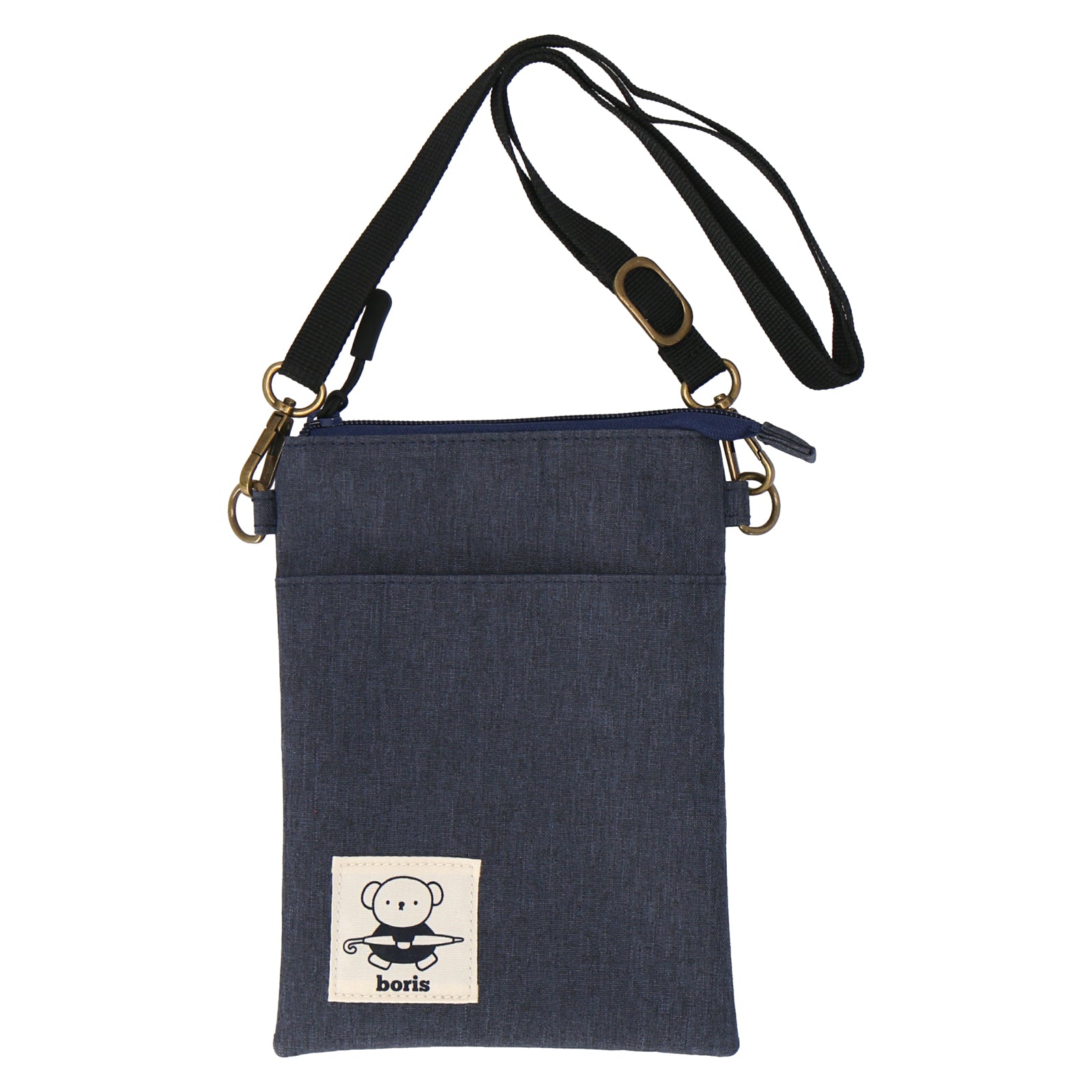 ミッフィーやボリスのプリントネームがポイントのショルダーポーチ。落ち着いた色合いでコーディネートに合わせやすいデザインです。内ポケット、フロントポケット付きで荷物を整理しやすいのもポイント。