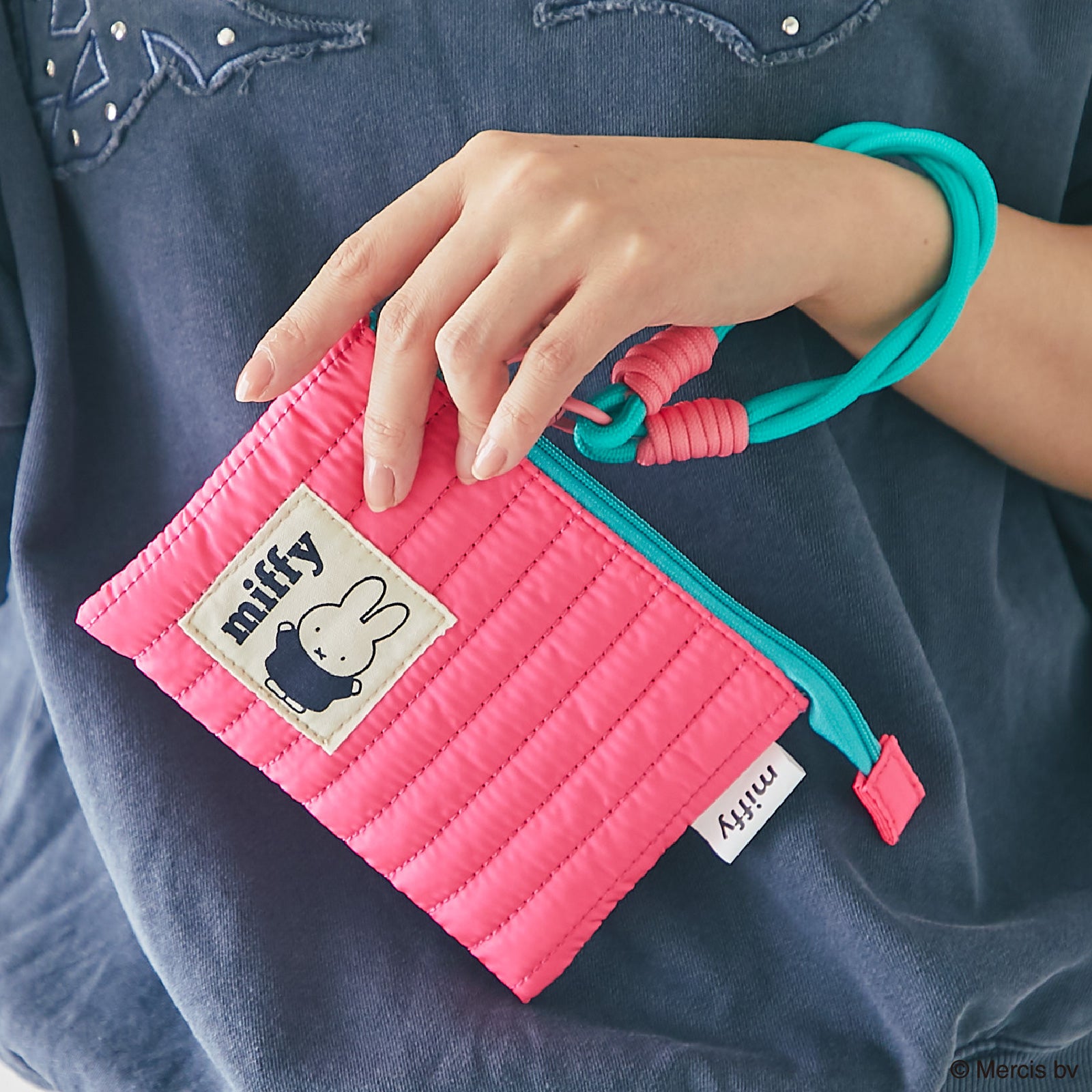 ポップなカラーリングが目を引くヌビ(キルティング)生地のフラットポーチ。お友達とおそろいにしたり、プレゼントにもおすすめです。