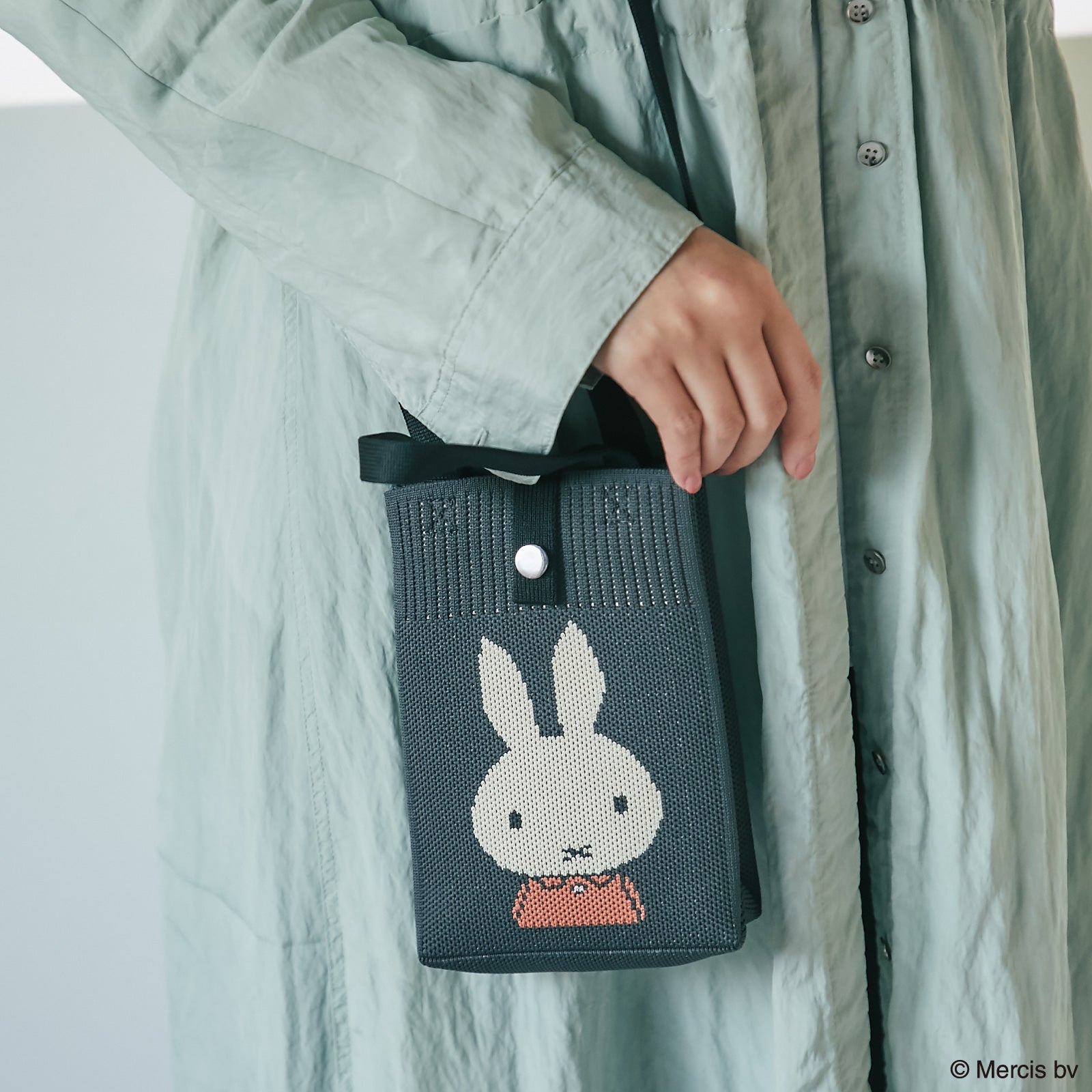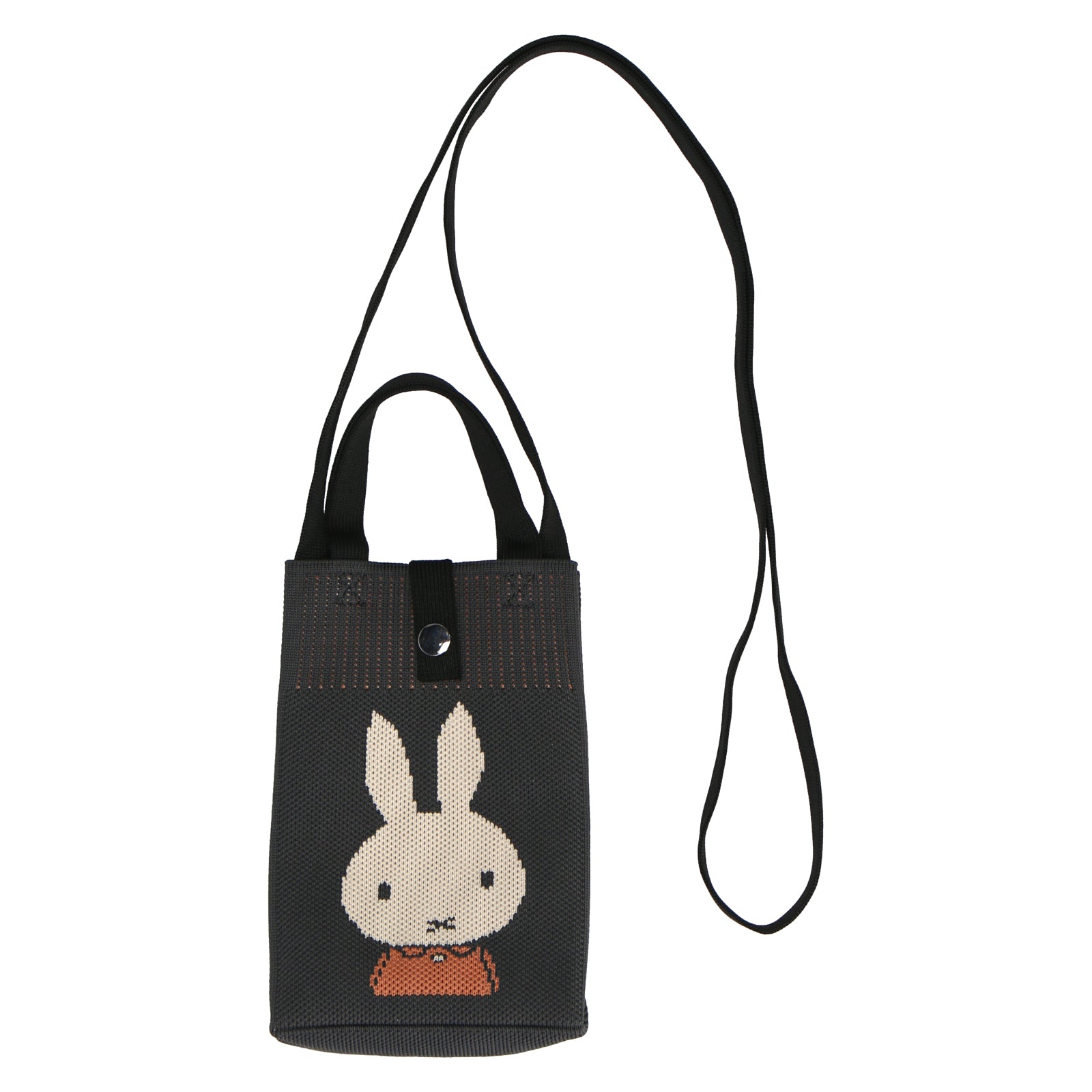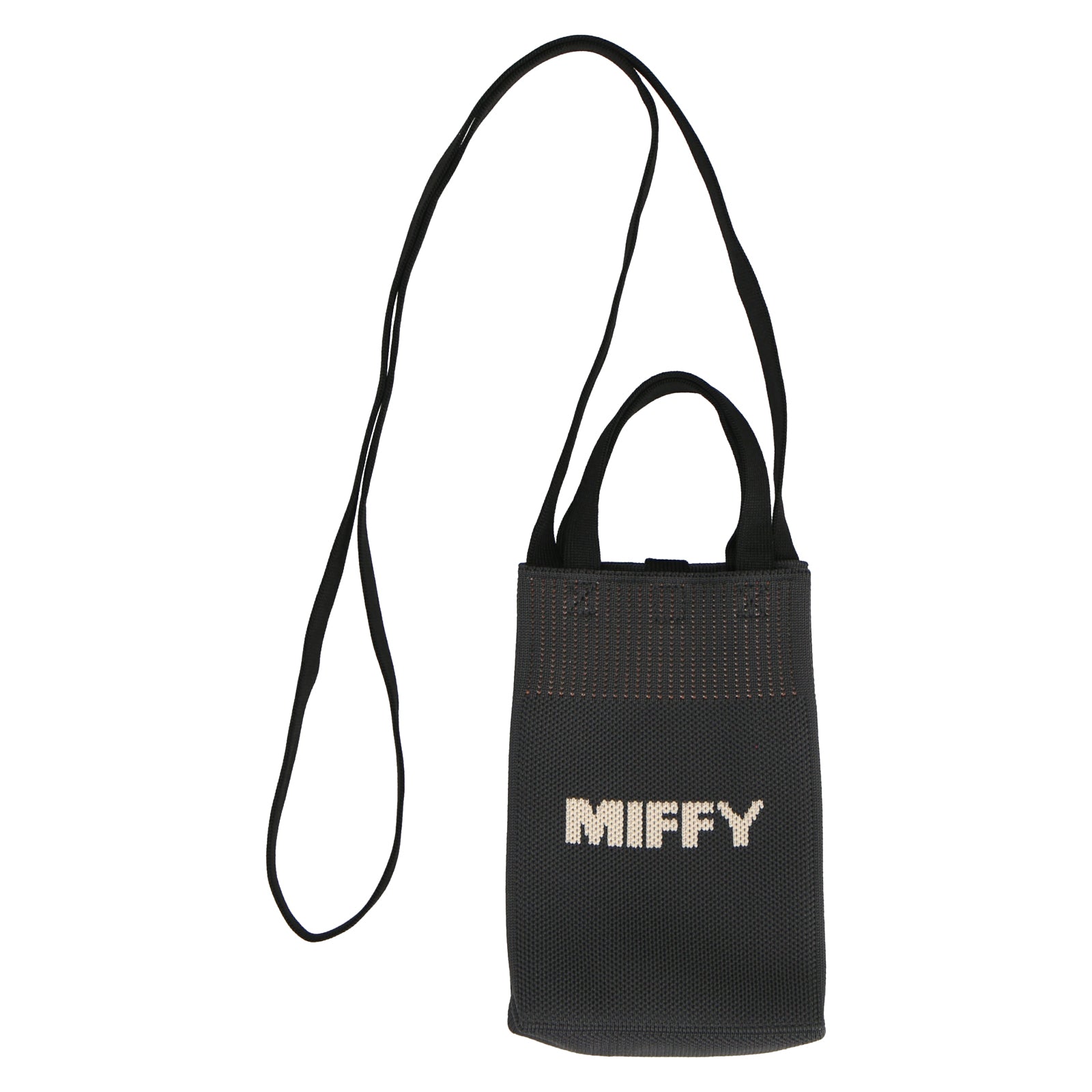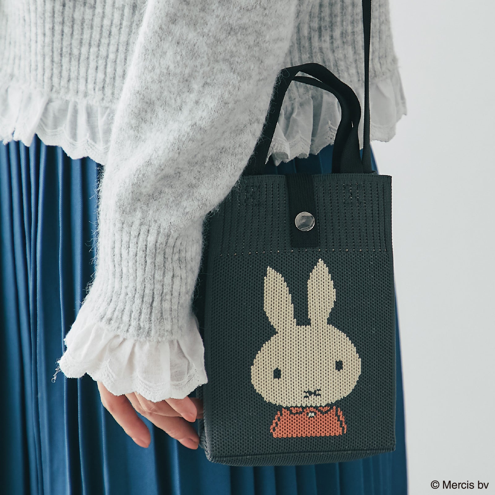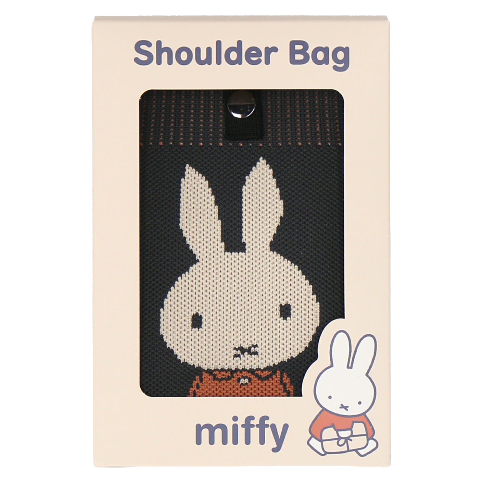 表面にはミッフィー、背面にはロゴがデザインされたニットショルダーバッグ。すぐに出し入れがしたいスマホやハンカチ、ポケットティッシュなどを入れられて便利です。箱入りでギフトにもおすすめ。