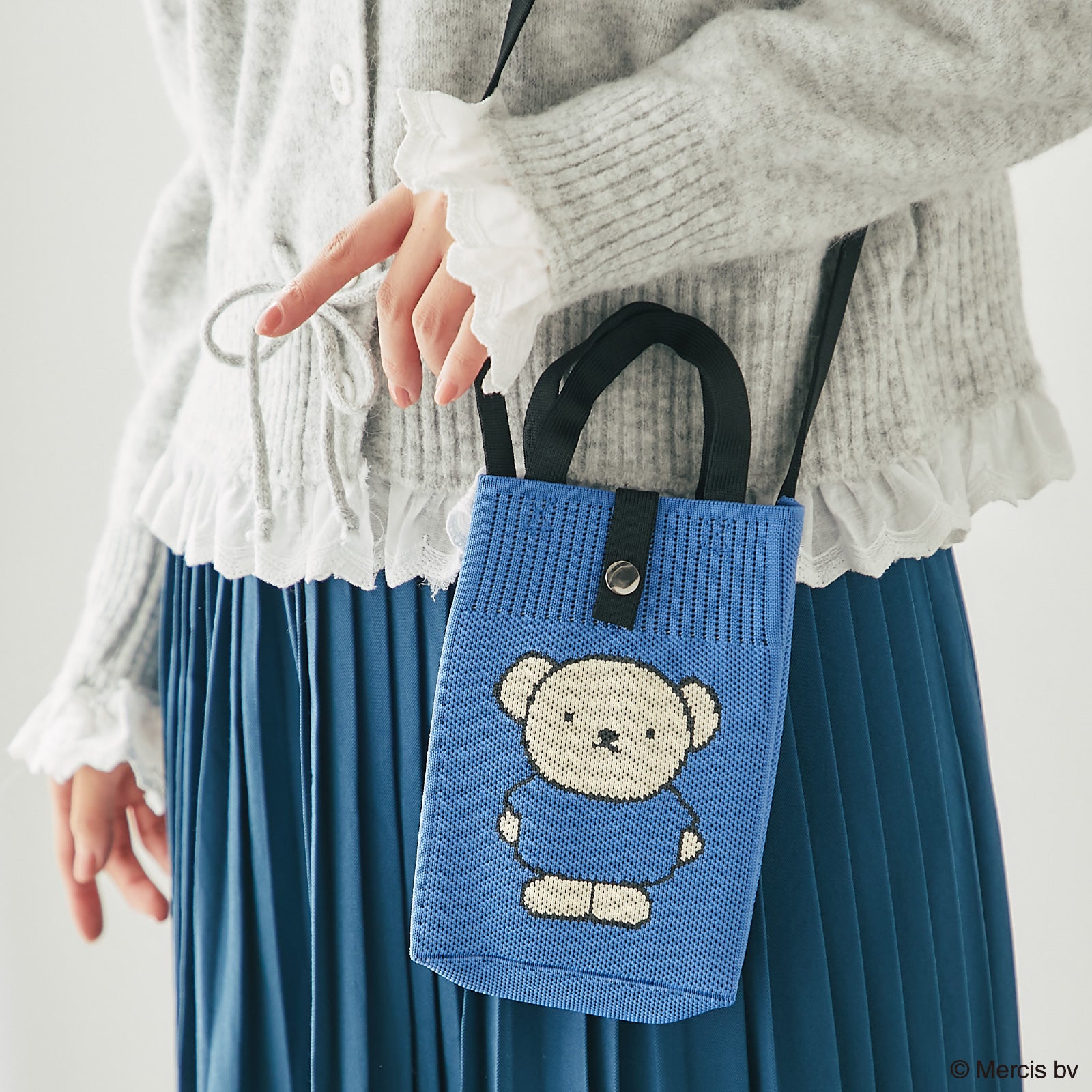 表面にはボリス、背面にはロゴがデザインされたニットショルダーバッグ。すぐに出し入れがしたいスマホやハンカチ、ポケットティッシュなどを入れられて便利です。箱入りでギフトにもおすすめ。