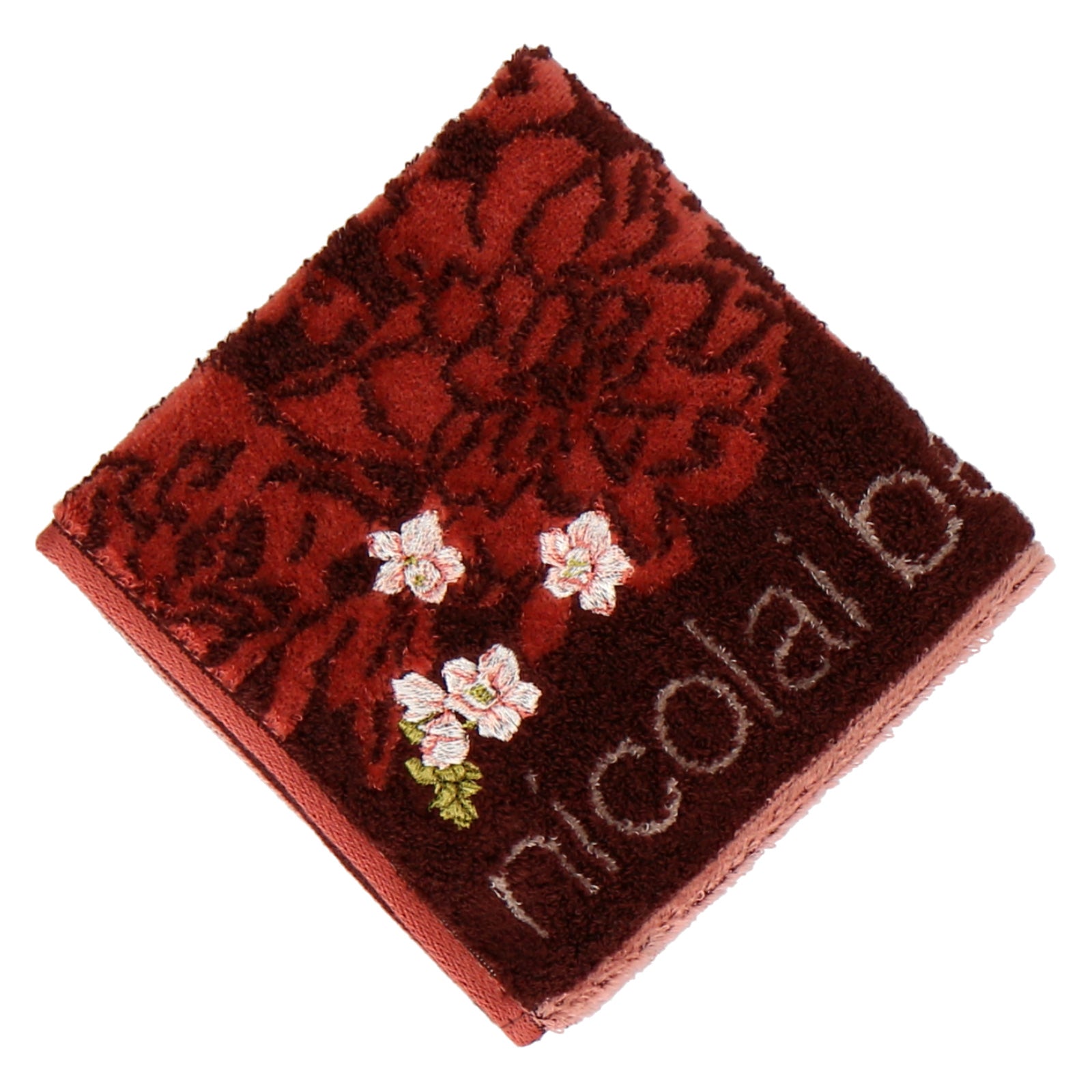 フリルのような花びらが美しいローズ(ラロック)とクリスマスローズを組み合わせリースが立体的で、リズミカルに構成したデザイン。 コーナー部分の刺繍がアクセントになっています。 風合いのいいコットン素材のミニタオルはギフトにもおすすめです。