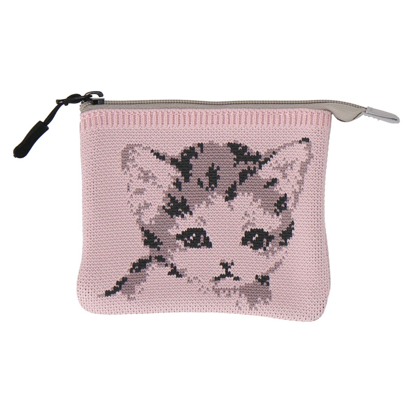 かわいらしいい子猫が編み柄で表現されたニットフラットポーチ。コスメや小物の収納にぴったりです。箱入りでギフトにもおすすめ。