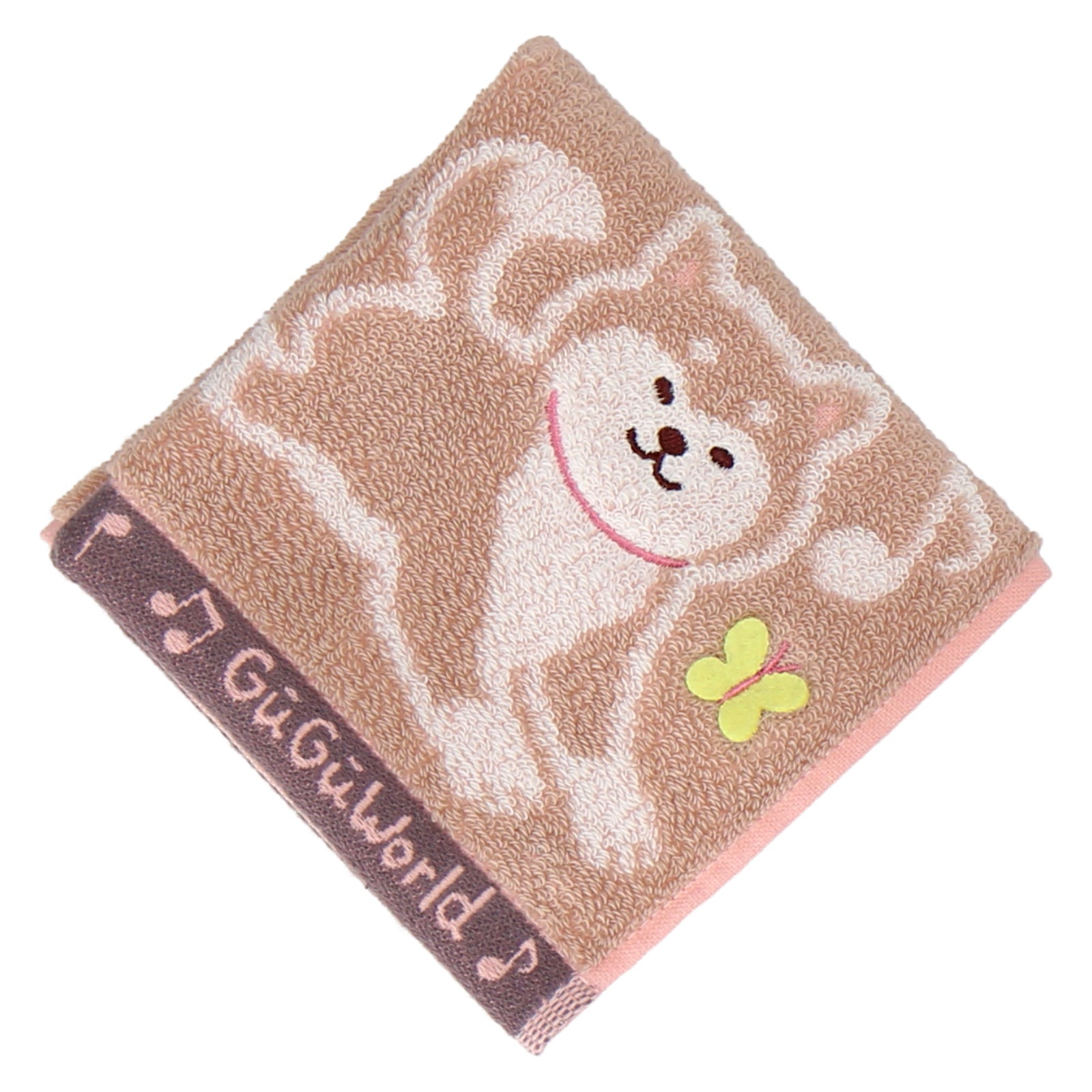 表情豊かな柴犬の姿が愛らしいタオルハンカチ。ちょうちょのアップリケ刺繡がポイントです。プチギフトにもおすすめ。