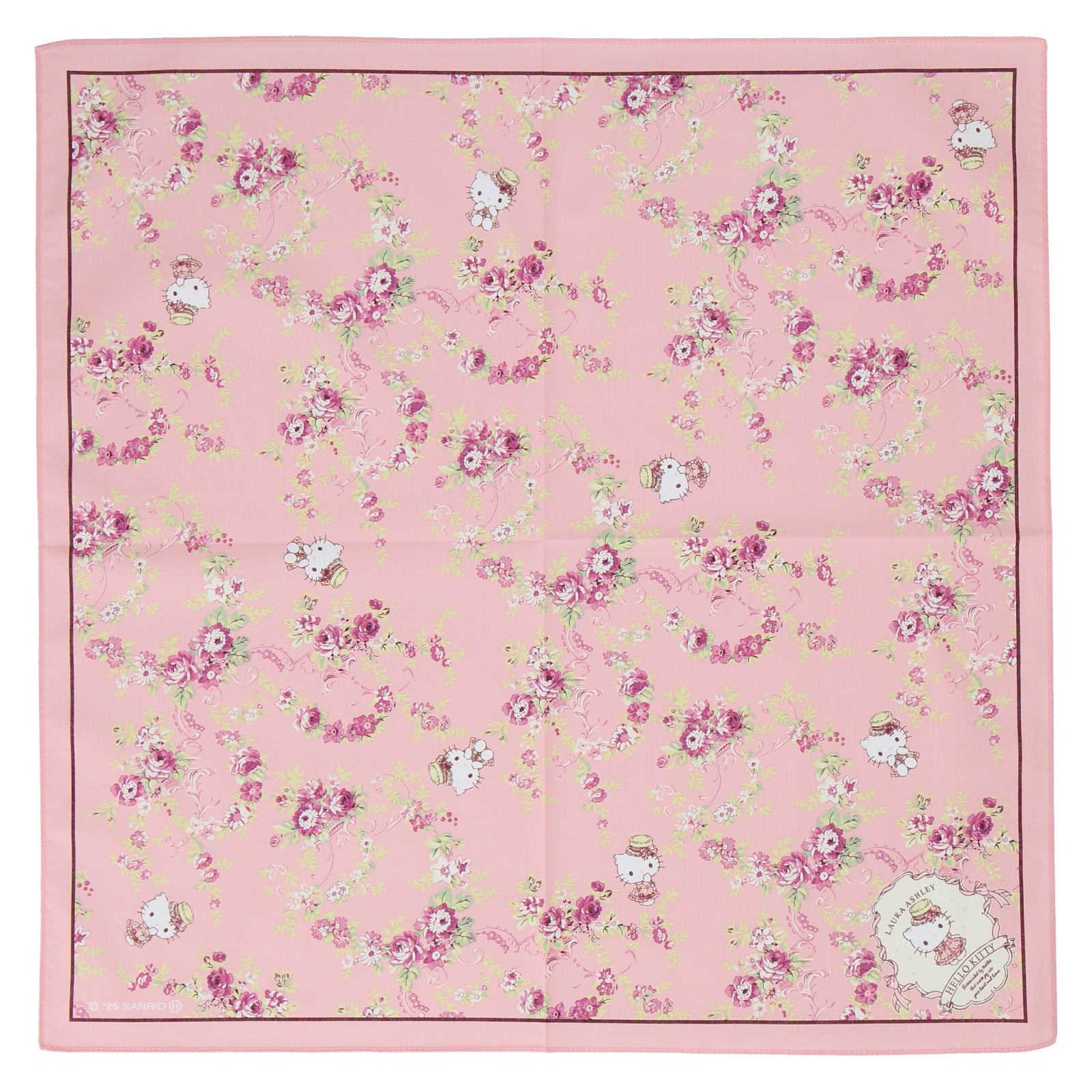ローラ アシュレイのアーカイブ柄「Josephine」のドレスを着たハローキティがポイントのプリントハンカチです。