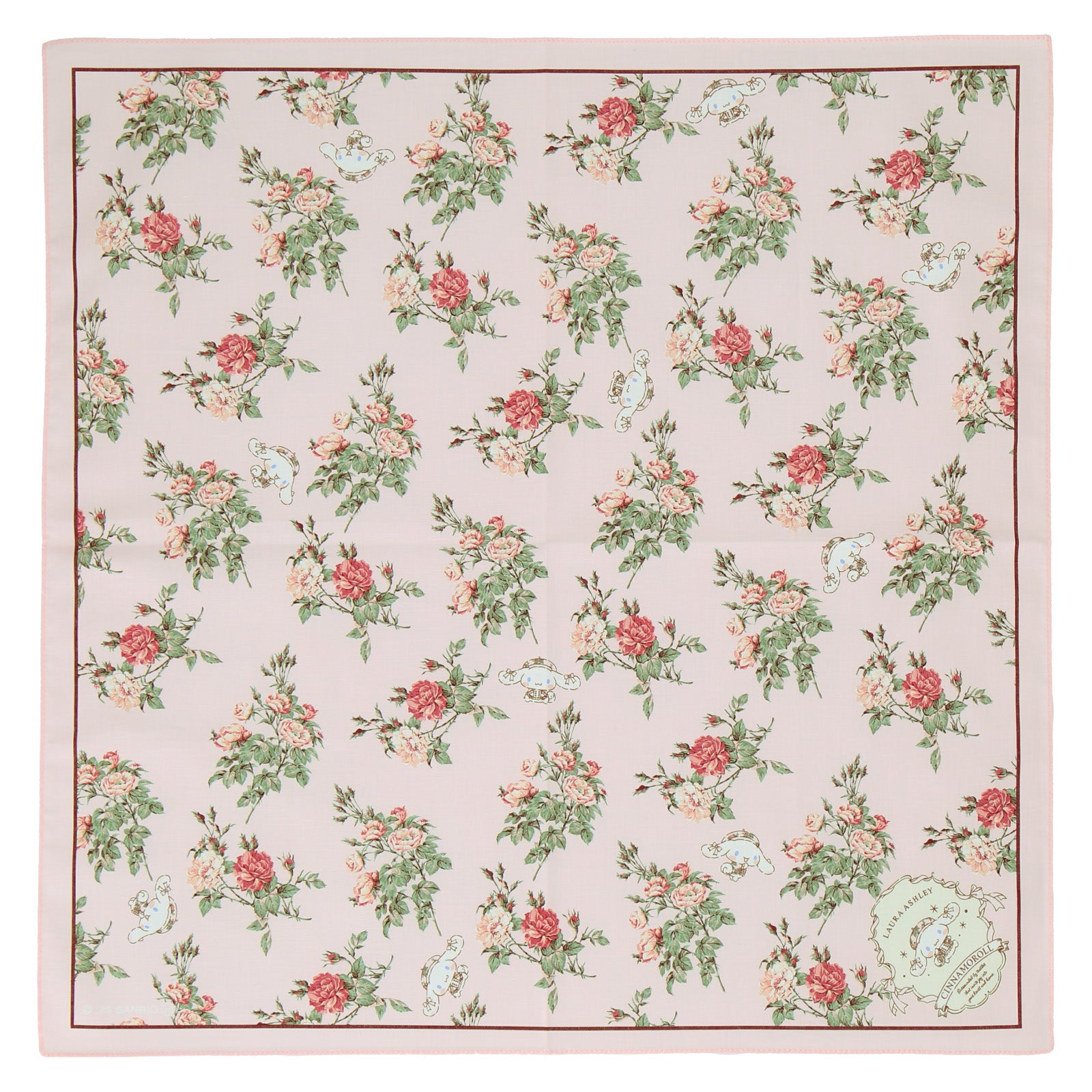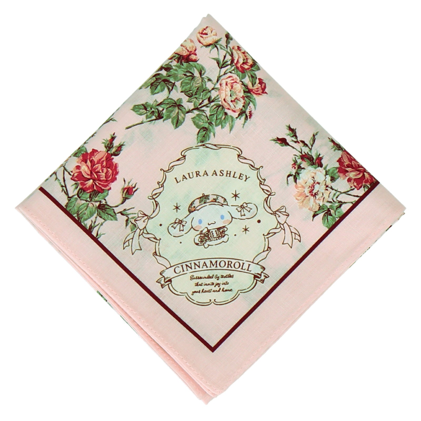 ローラ アシュレイのアーカイブ柄「Memento」のドレスを着たシナモロールがポイントのプリントハンカチです。