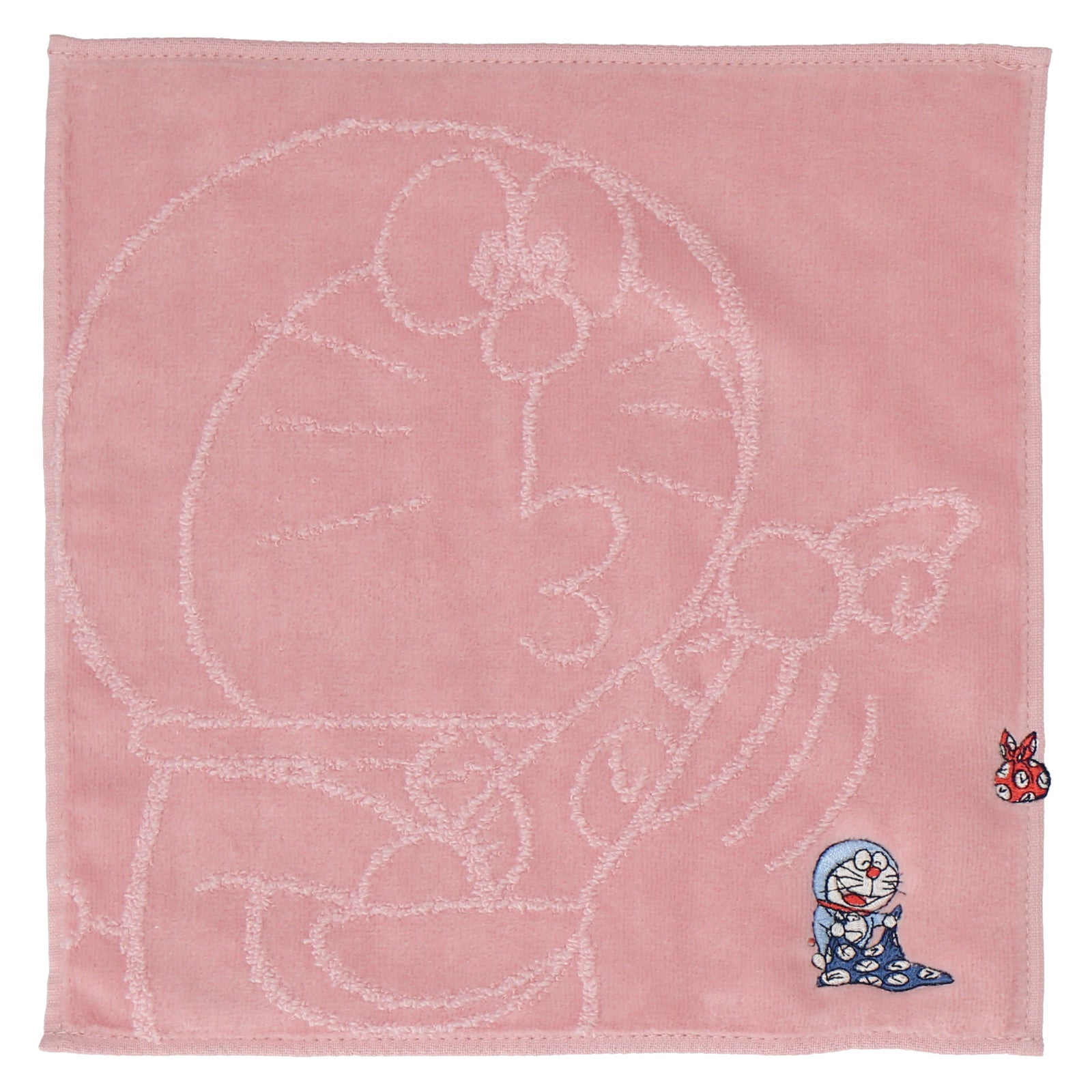 ドラえもんが四次元ポケットからひみつ道具のタイムふろしきを出している姿がデザインされています。ハンカチを折りたたむと刺しゅうされたタイムふろしきが横からチラっと見えるギミック要素のあるタオルハンカチです。ご自身はもちろん、ちょっとした贈り物にもおすすめです。