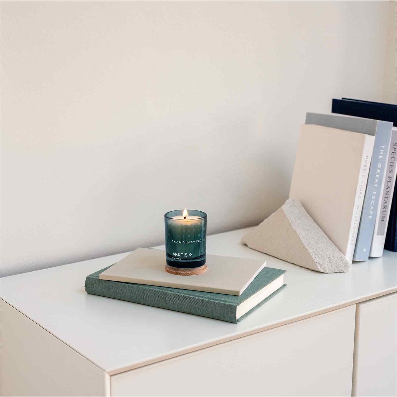 持続可能な農法で栽培され、遺伝子組み換えでないスウェーデンの菜種油から作られたロウを使用したアロマキャンドル。