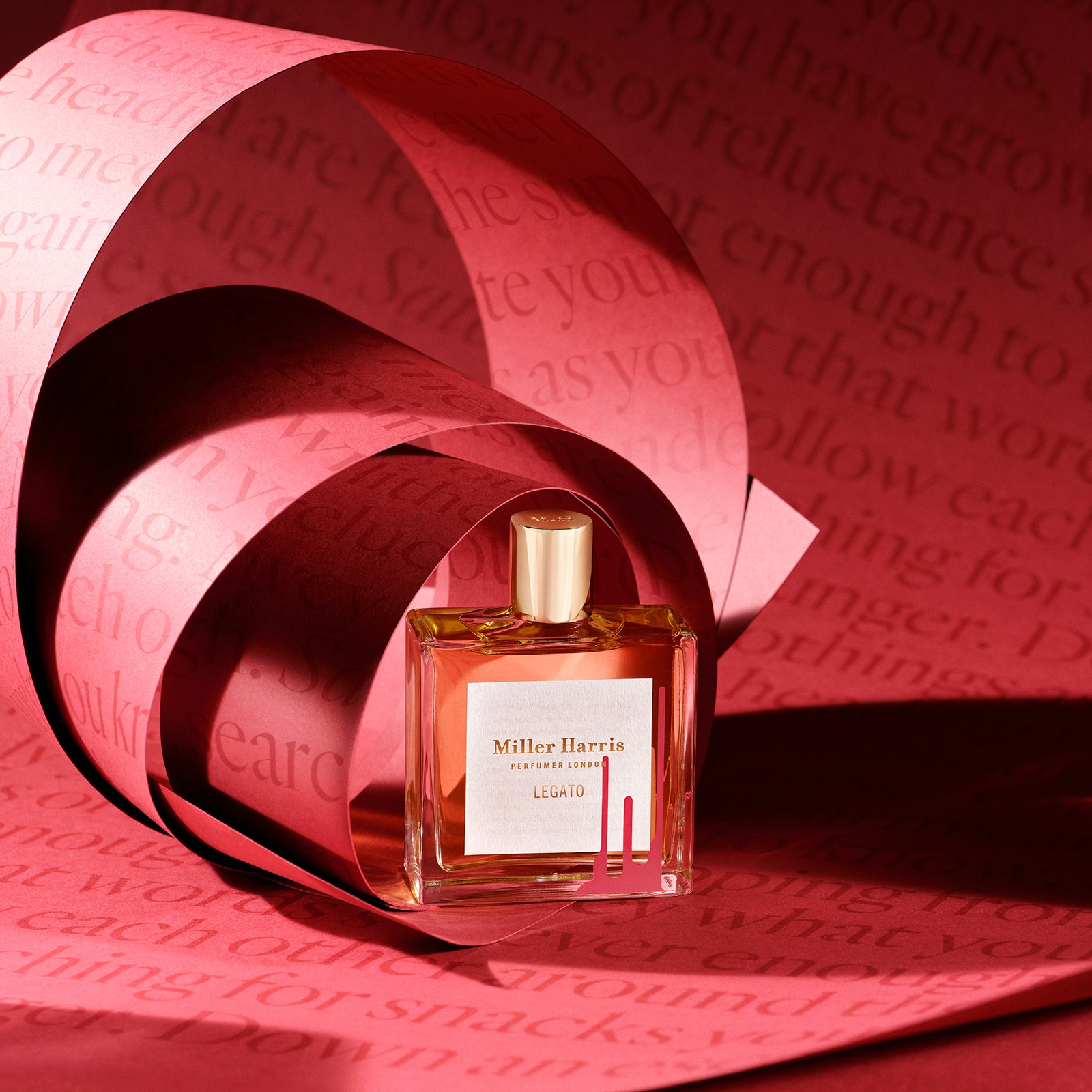 「メロディ」と「レガート」は、いずれも同じ小説『オープン・ウォーター』の一説から着想を得て、惹かれ合うような欲望を表現していますが、ペアとして意図されたものではなく、それぞれの感情表現を補完し合う香りとして創られました。