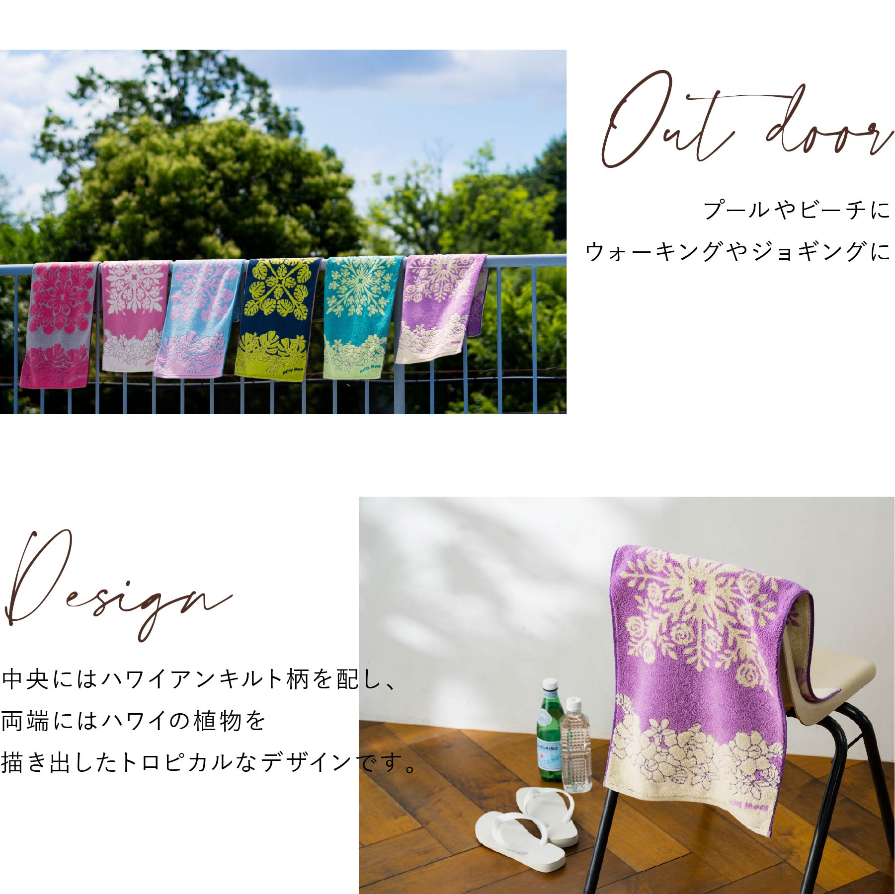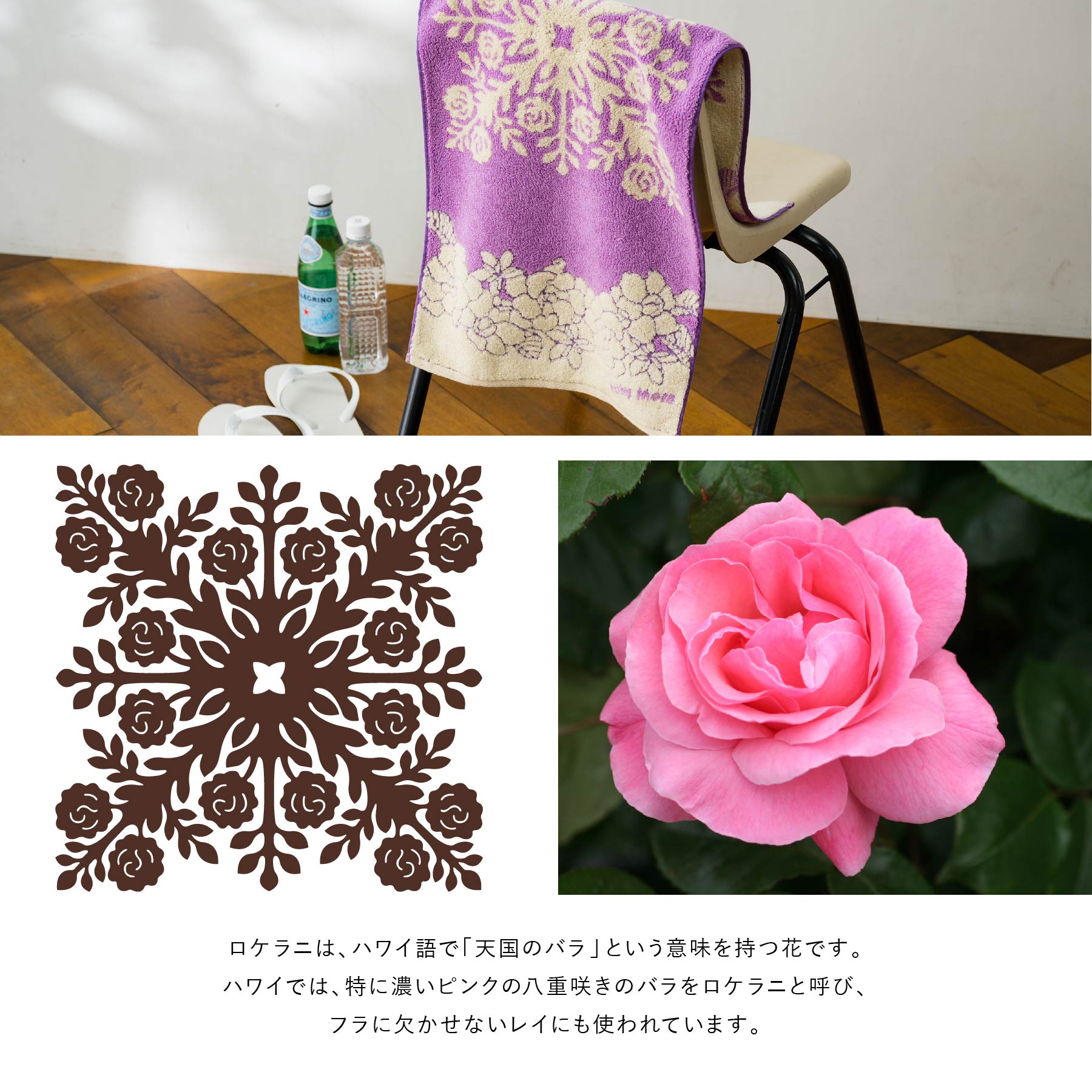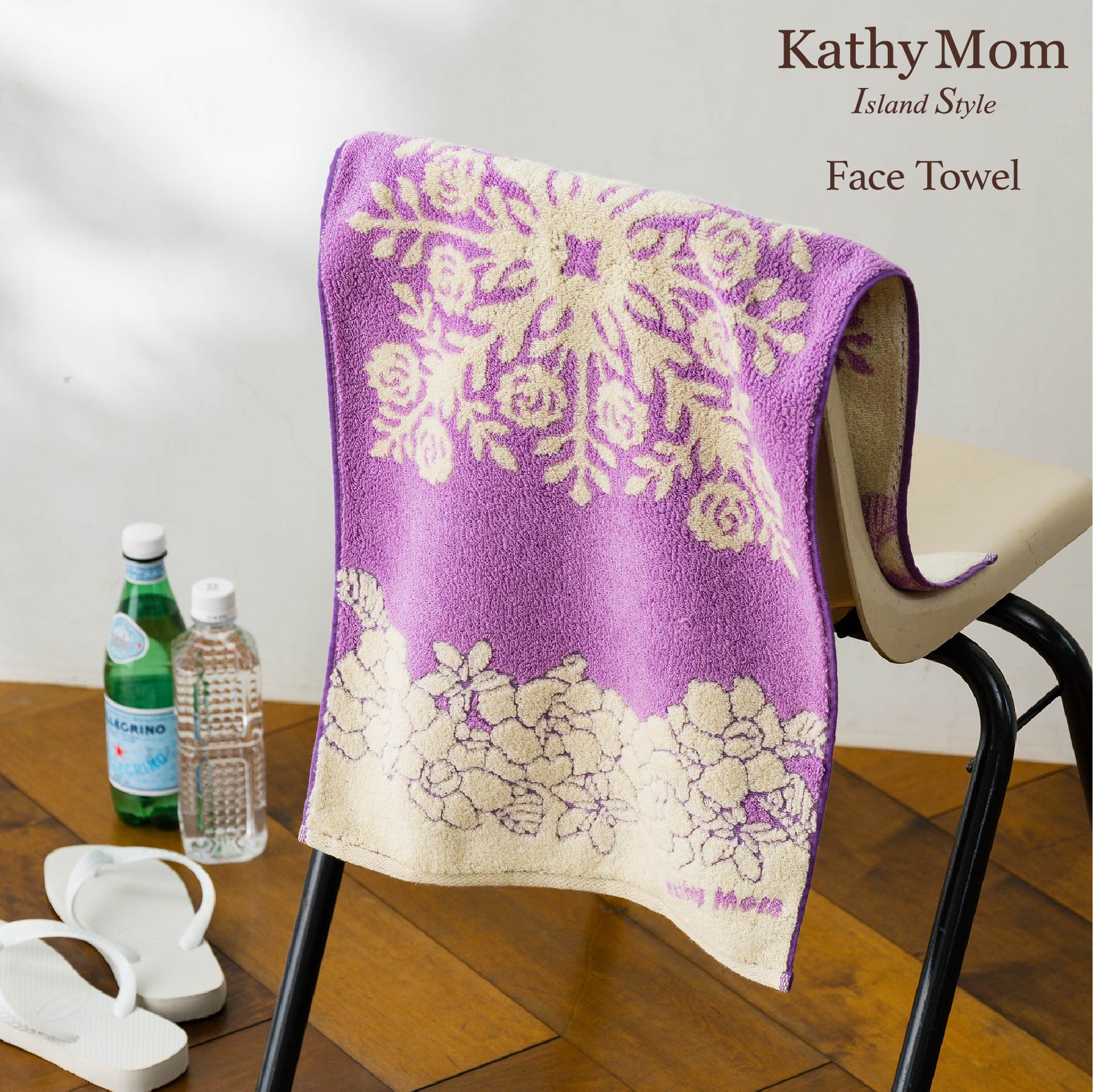ハワイアンキルト作家、キャシー中島さんプロデュースの、ハワイの植物をモチーフにした、リゾート感あふれるハワイアンキルト柄フェイスタオルです。