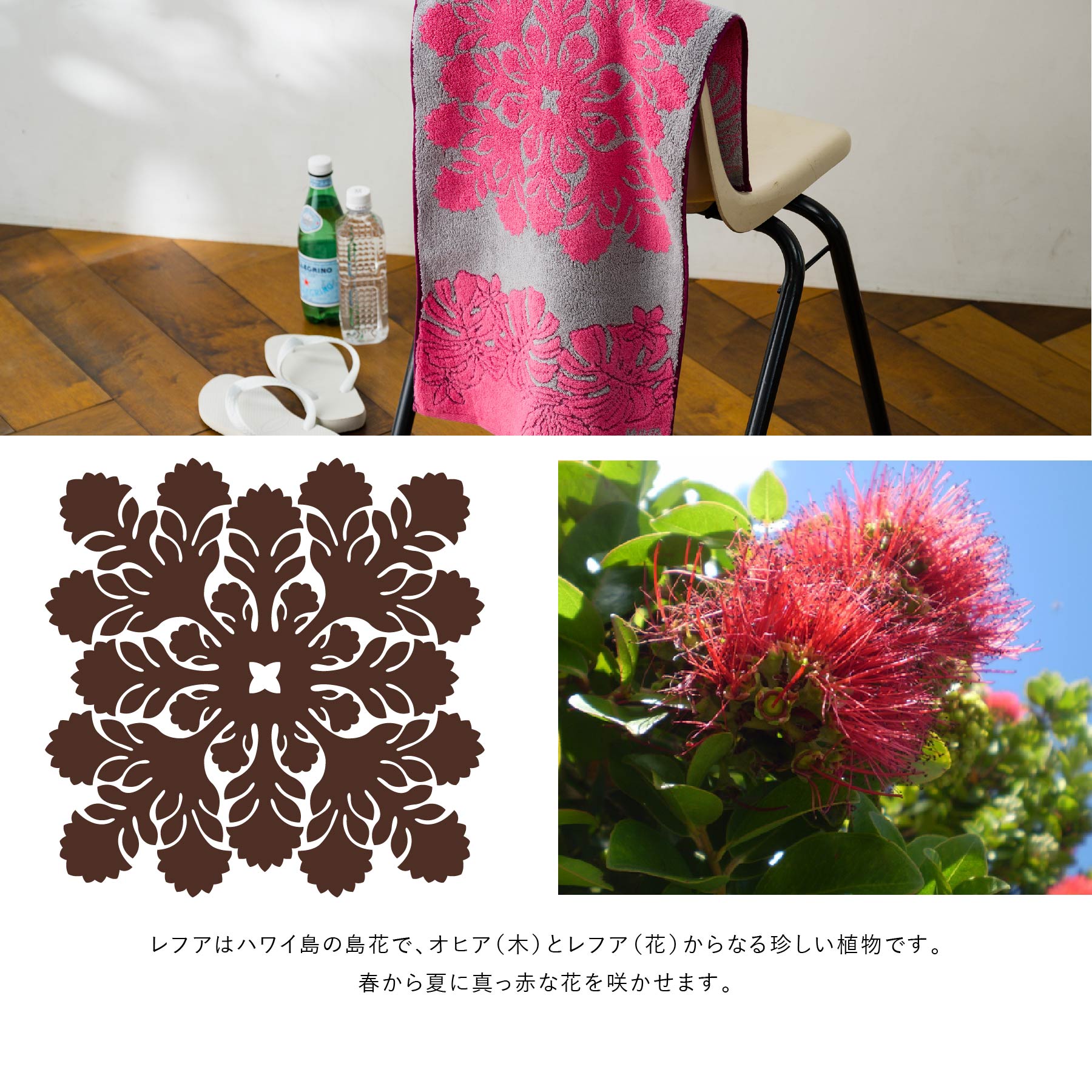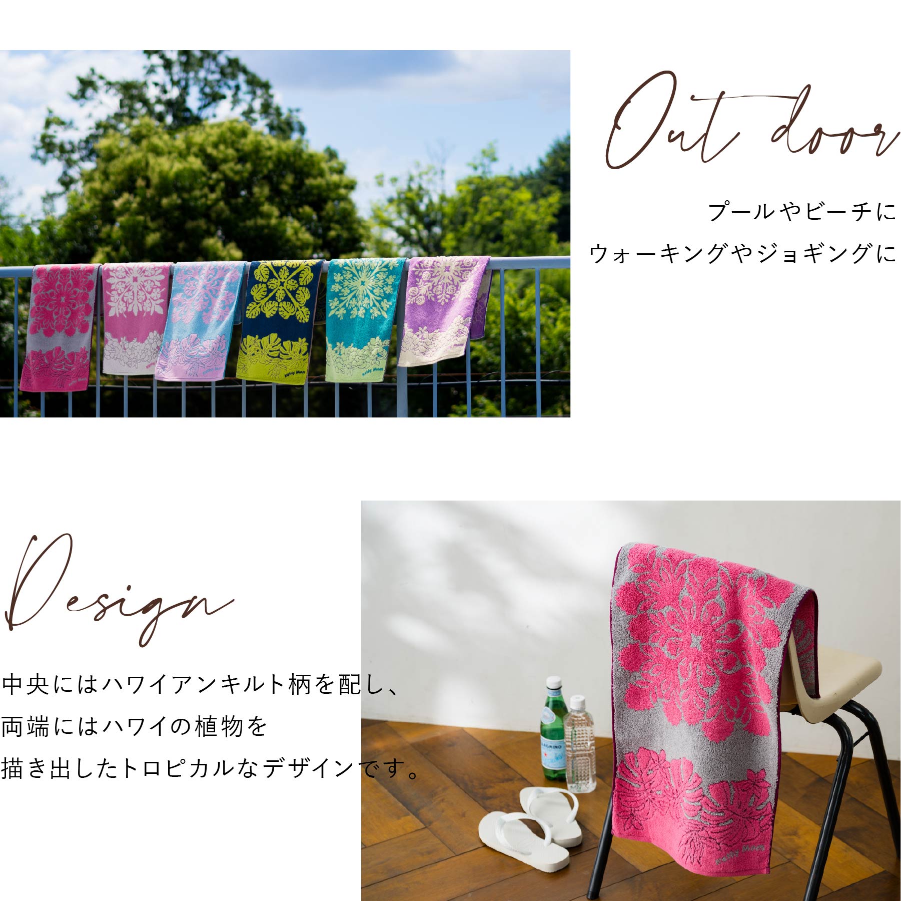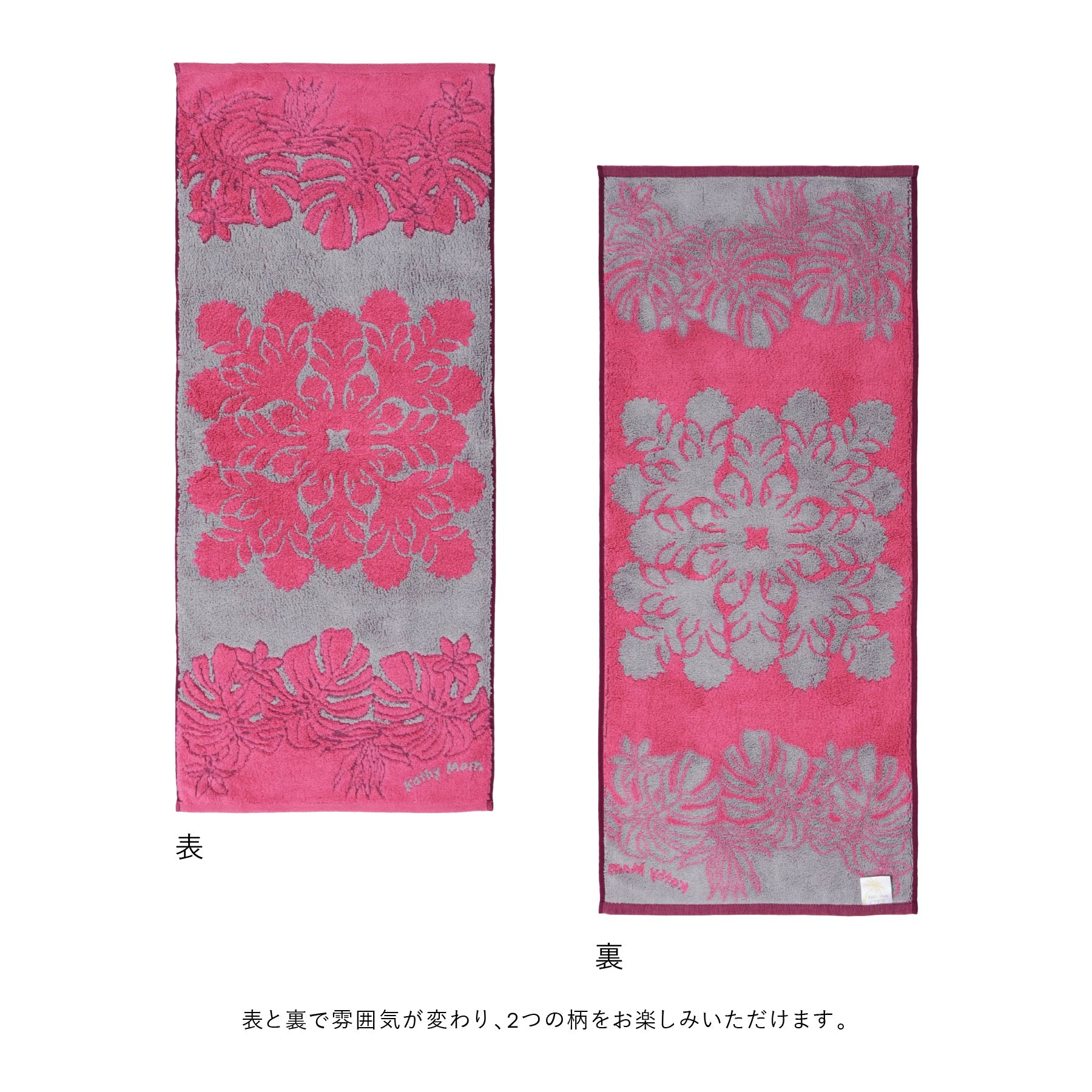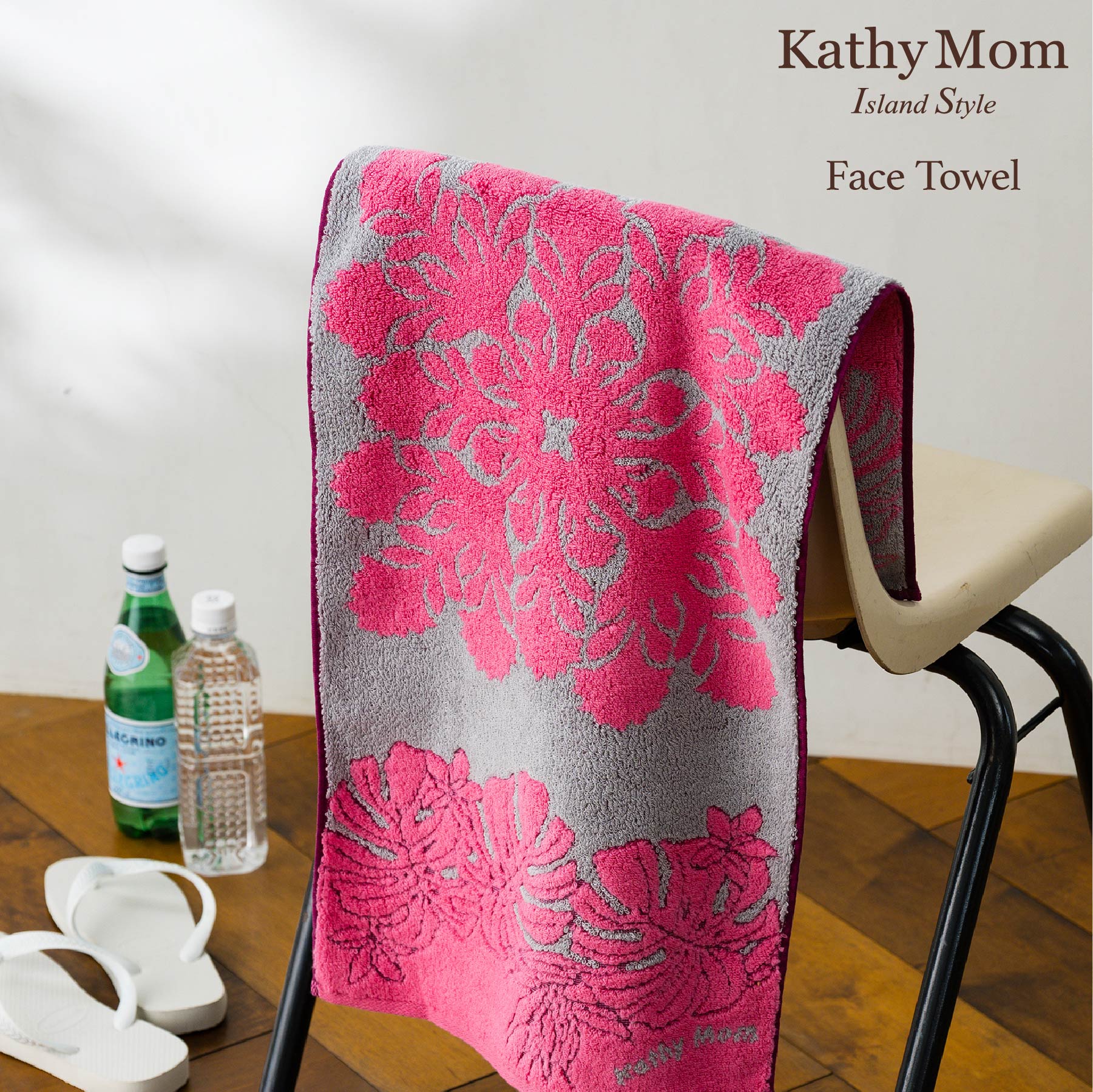 ハワイアンキルト作家、キャシー中島さんプロデュースの、ハワイの植物をモチーフにした、リゾート感あふれるハワイアンキルト柄フェイスタオルです。