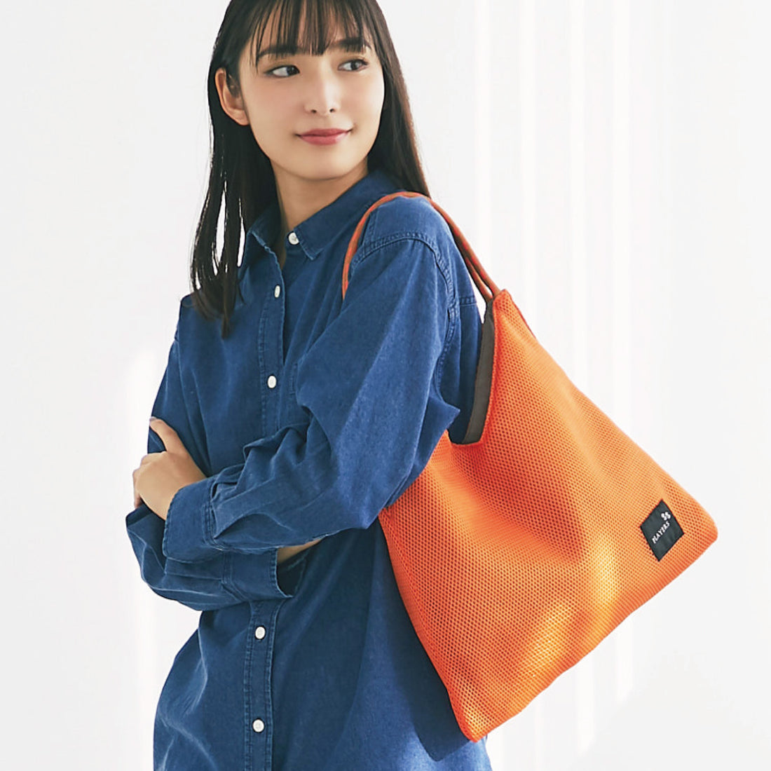 表裏で素材感を変えているのでコーディネートやシチュエーションで使い分けが出来ます。程よいサイズ感でご近所へのお買い物やちょっとしたお出かけなど幅広くお使い頂けます。 ナイロン生地の面にはオープンポケットもあるため、小物の仕分けもできます。