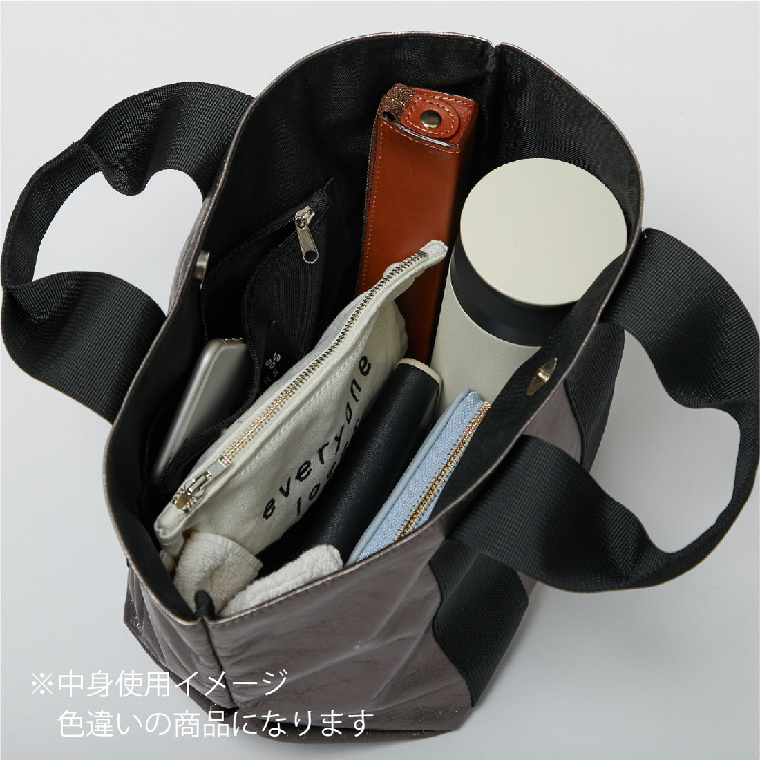 財布やポーチ、キーケースなどお出かけに必要なアイテムをすっきり収納可能。 ボトルも入るサイズ感なのでランチトートとしても。