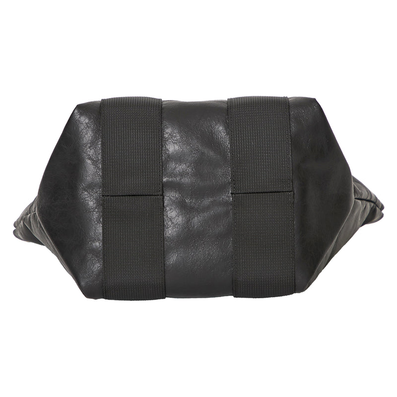 内ポケット付きなので、鍵やパスケースなどの小物も整理して収納できます。底板が付いているので、荷物を入れても型くずれしにくく、いつでもきれいなシルエットでお持ちいただけます。また鞄を置いたときも安定感があります。開口部は荷物の飛び出しを防ぐスナップボタン付きです。
