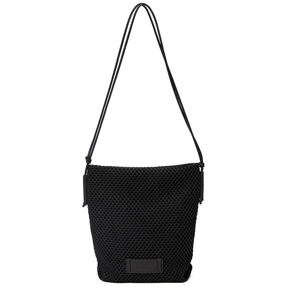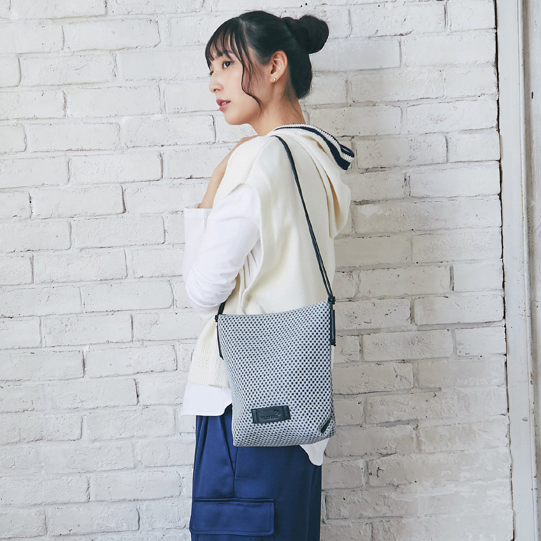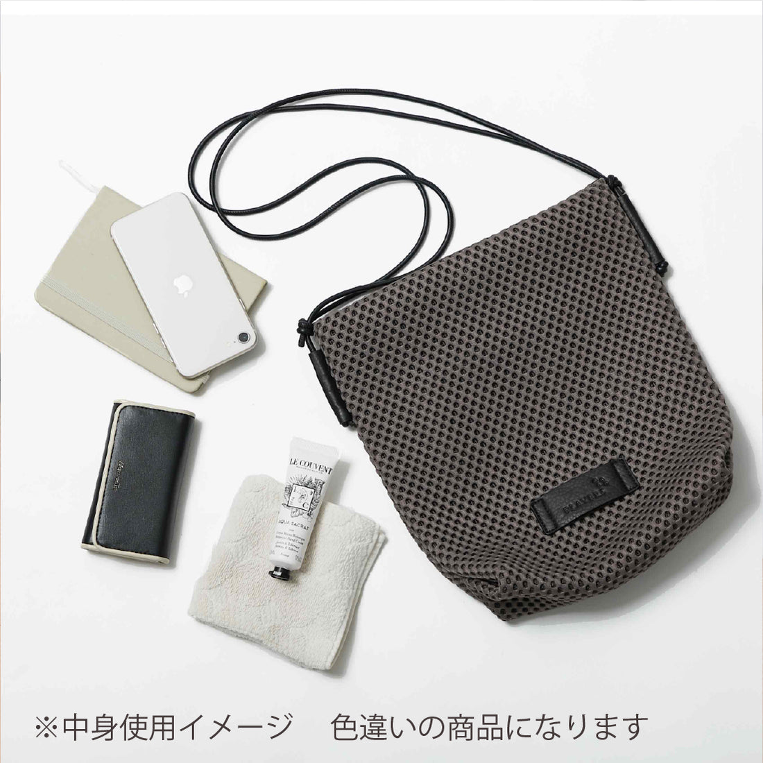 財布、スマートフォン、ポーチなど必要なものをコンパクトに収納。 ハリのあるメッシュ素材で、荷物が少なくても型崩れせず決まります。