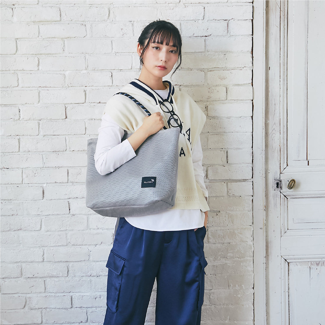 エアメッシュ素材に明るいグレーでスポーティーに。 ちらりと見えるブルーがアクセント。 シーンやコーディネートに合わせて使い分けて。
